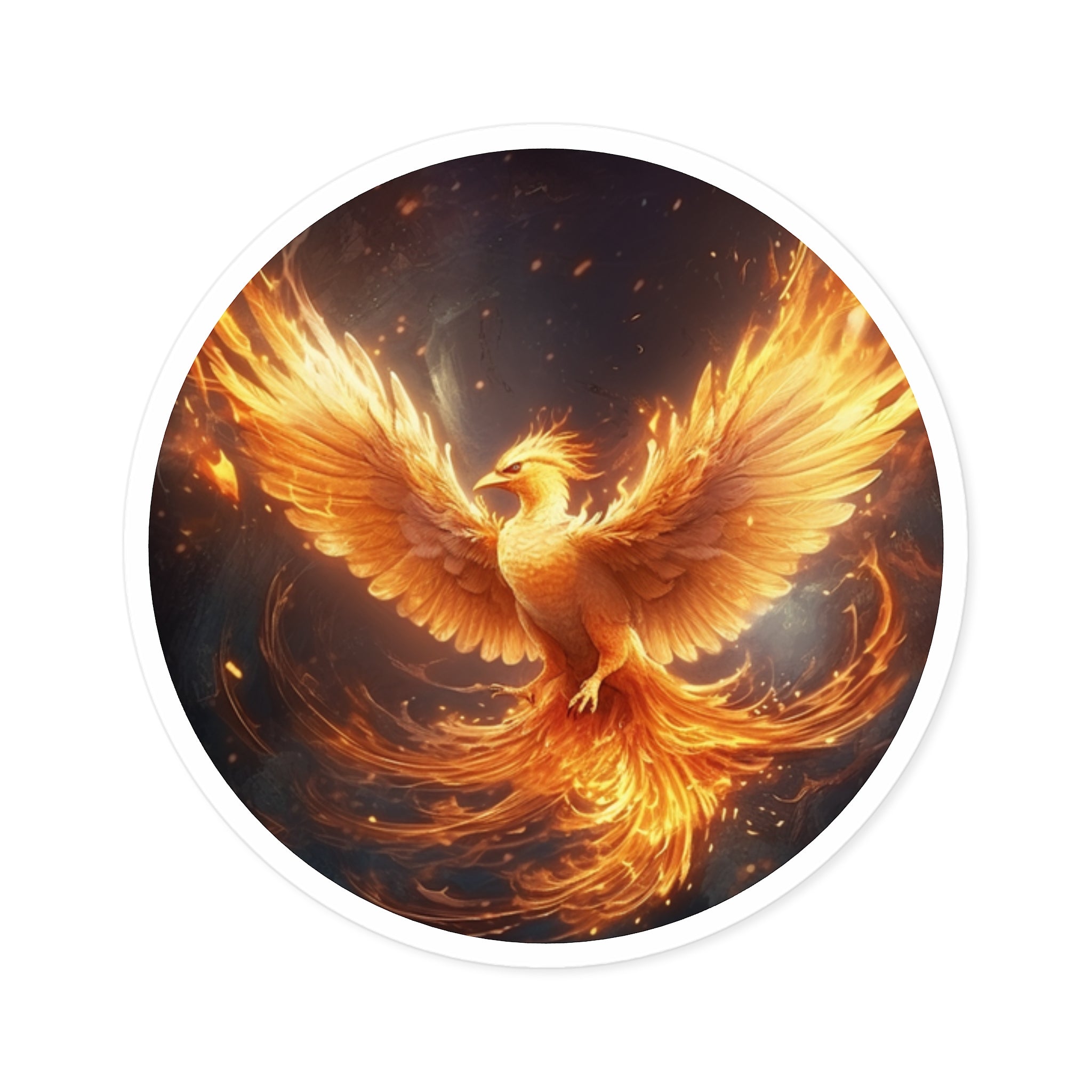 Phoenix Fire Round Stickers, Indoor/Outdoor, Unique Art Décor, Laptop Decals, Gift for Creatives, Magical Symbols, Boho Aesthetic