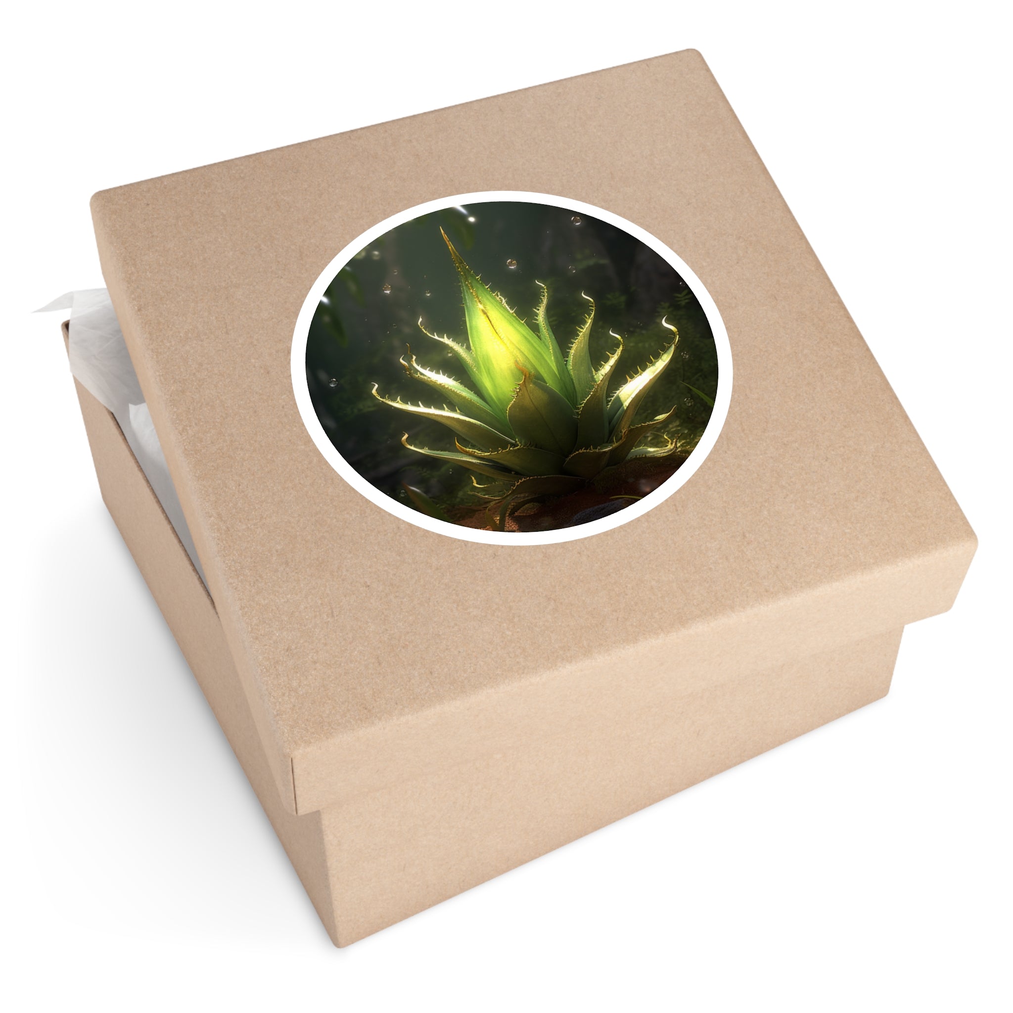 This detailed aloe plant artwork features a soft natural glow and a peaceful forest tone, making it an inviting decorative sticker for personal items.Product Features:-Material:...