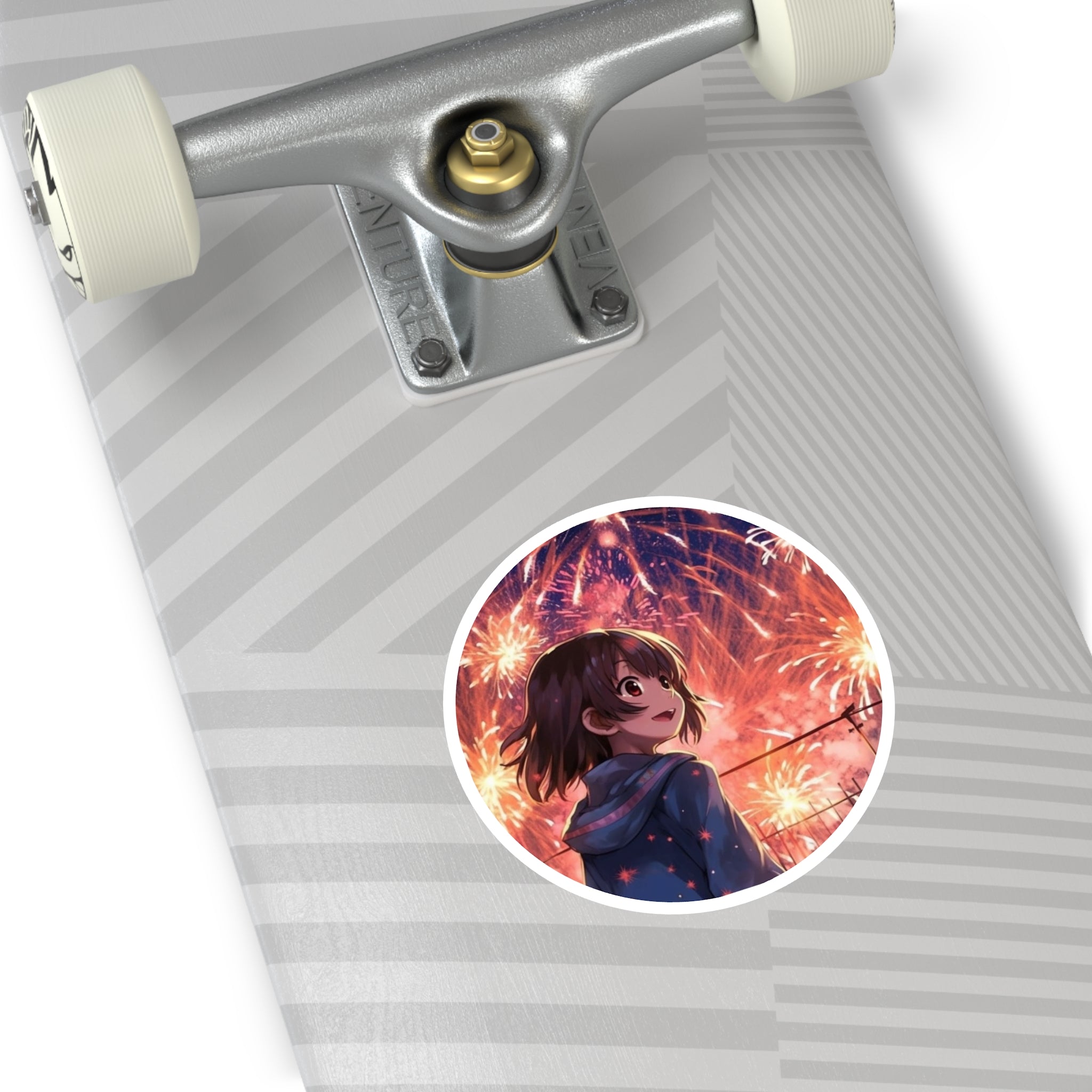Anime Fireworks Sticker, Night Sky Art, Festival Design, Whimsical Gift