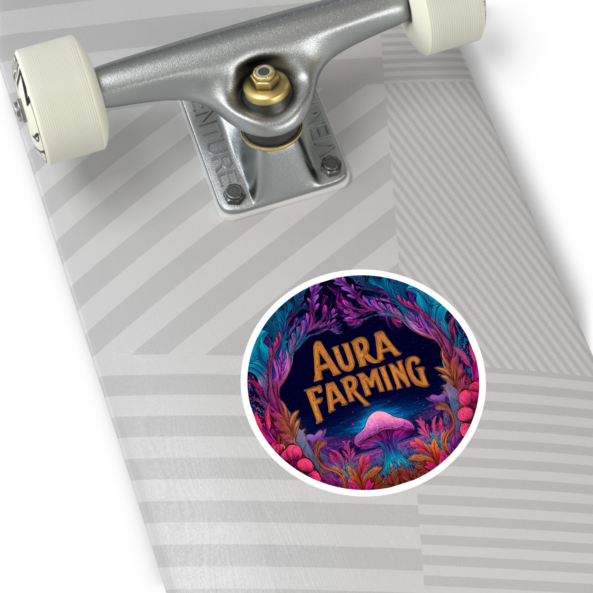 This artwork features a vibrant arrangement of stylized plants and organic shapes surrounding the title Aura Farming, giving it a whimsical garden atmosphere.Product Features:-Material: Premium...