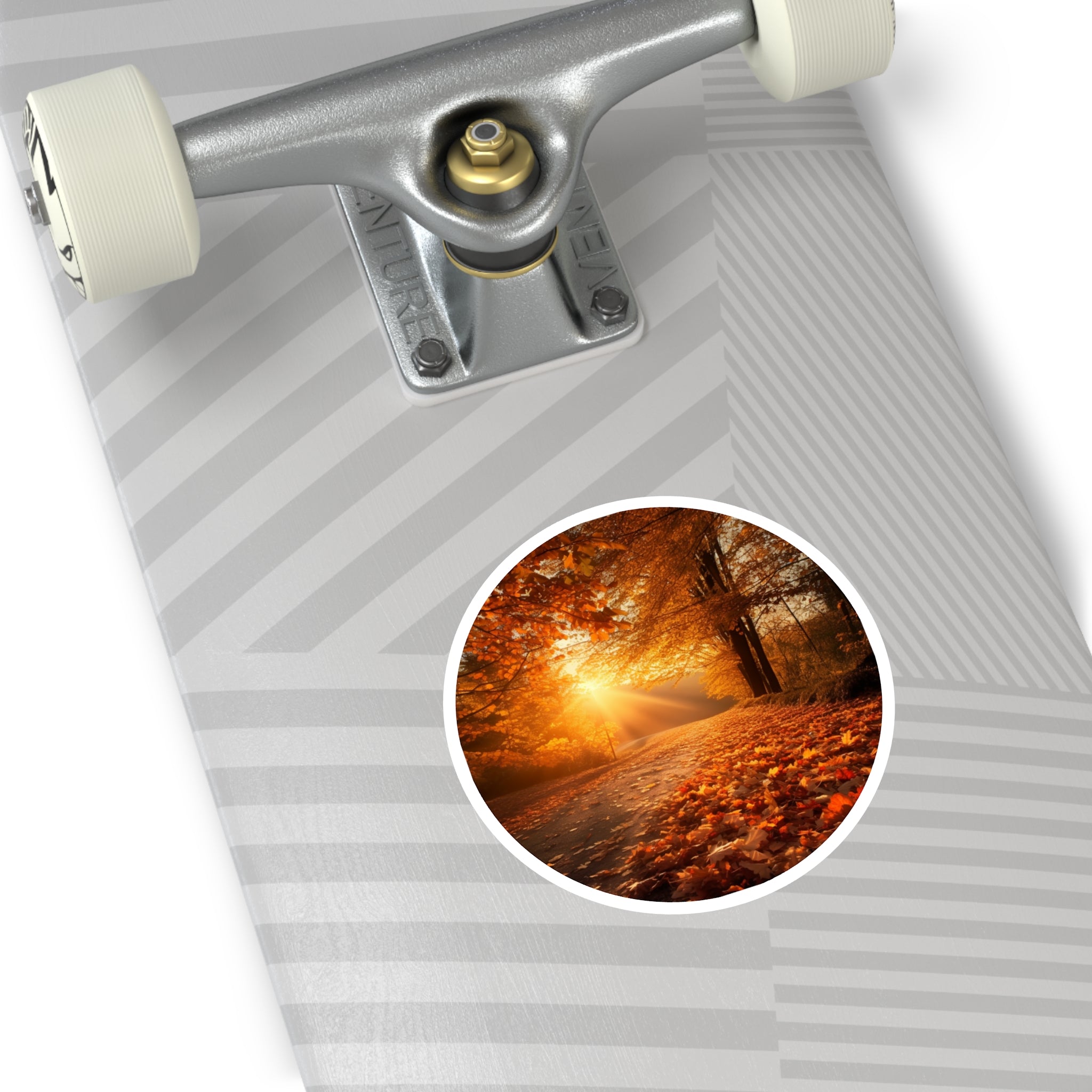 Autumn Forest Path, Golden Landscape Sticker, Laptop Decal, Fall Aesthetic Gift
