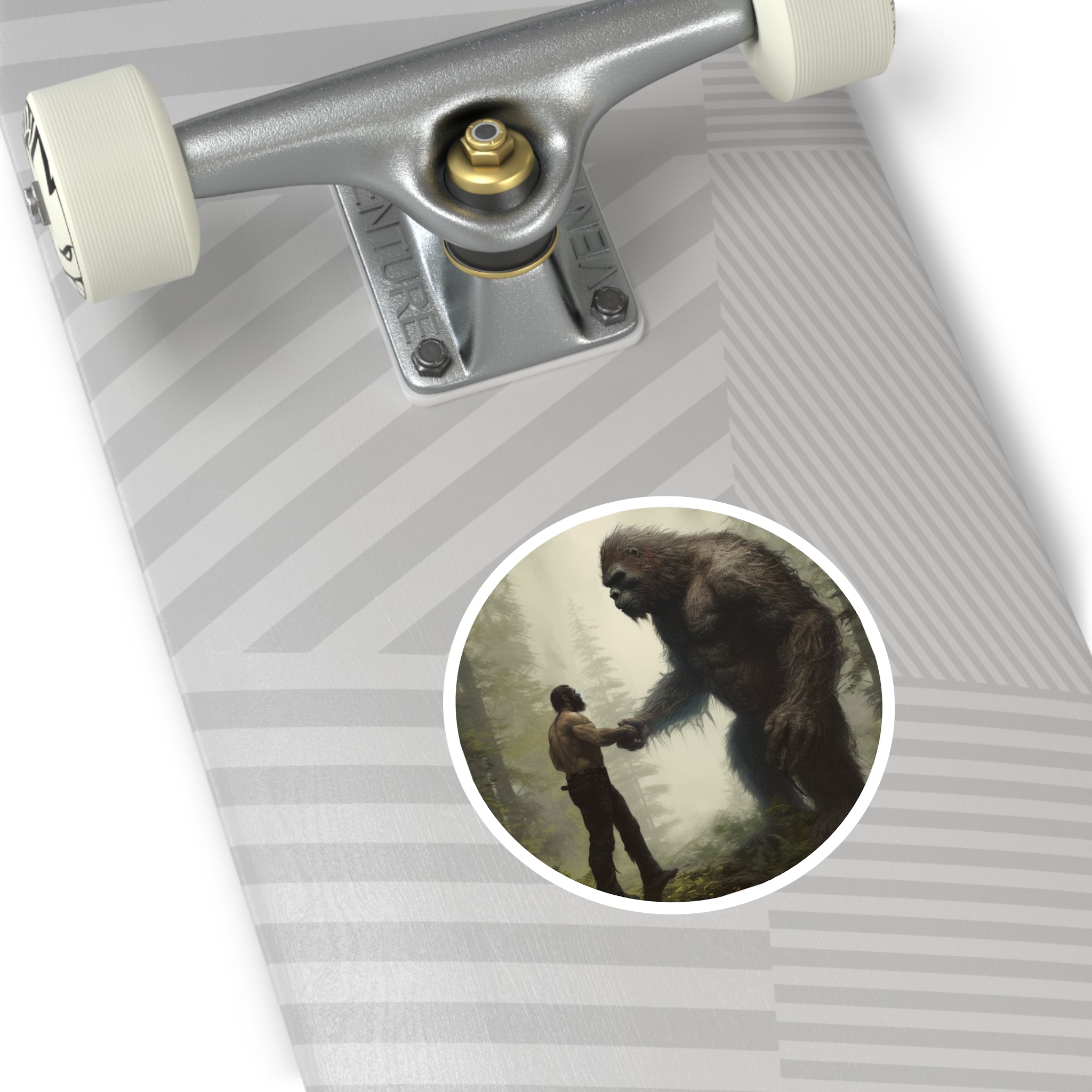Bigfoot Encounter Sticker, Cryptid Art, Forest Design, Mysterious Scene