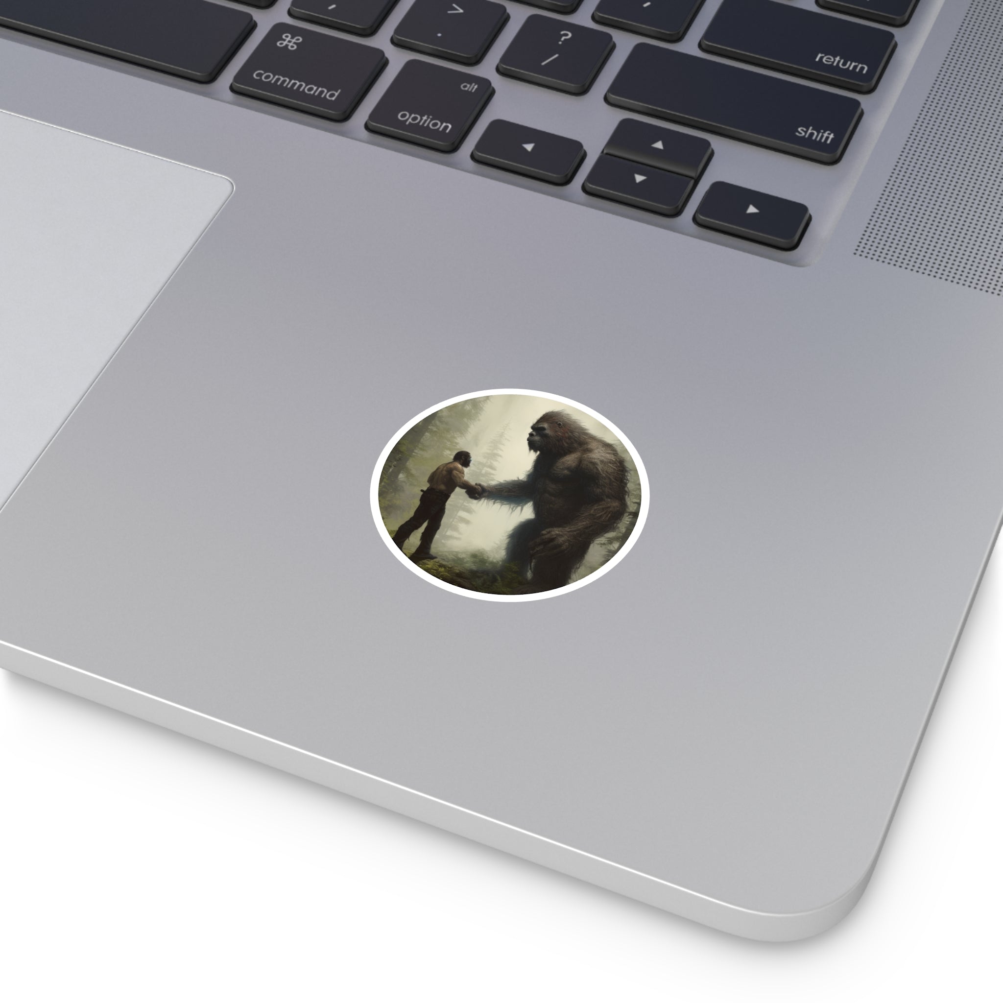 A powerful meeting between man and Bigfoot deep in misty woods—symbolizing curiosity, mystery, and wilderness lore.Product Features:-Material: Premium Vinyl-Available in 5 sizes-Finish: Matte-Water and scratch...
