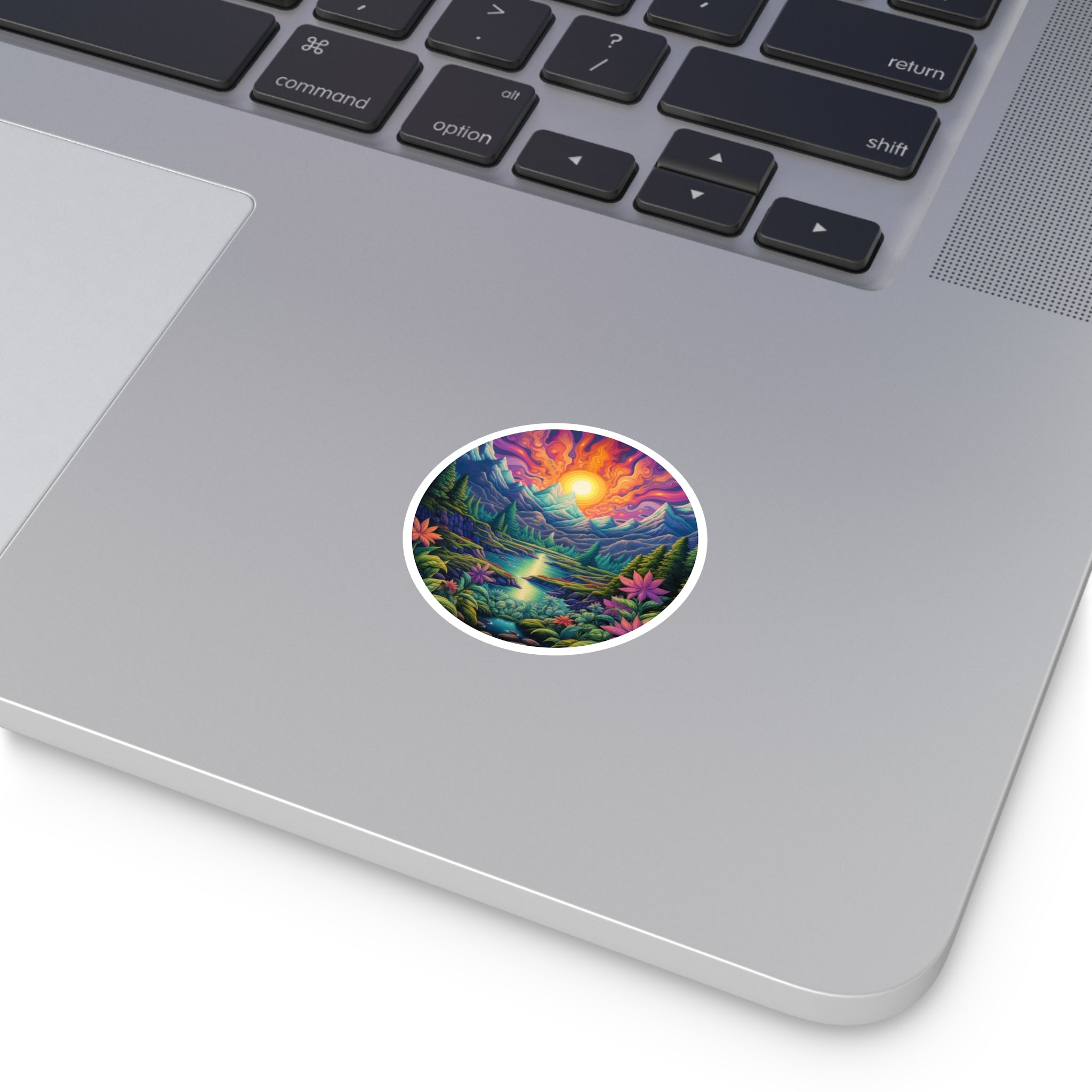 • Cannabis Plants in Mountain Forest, Scenic Nature Sticker, Outdoor Art, Green Design