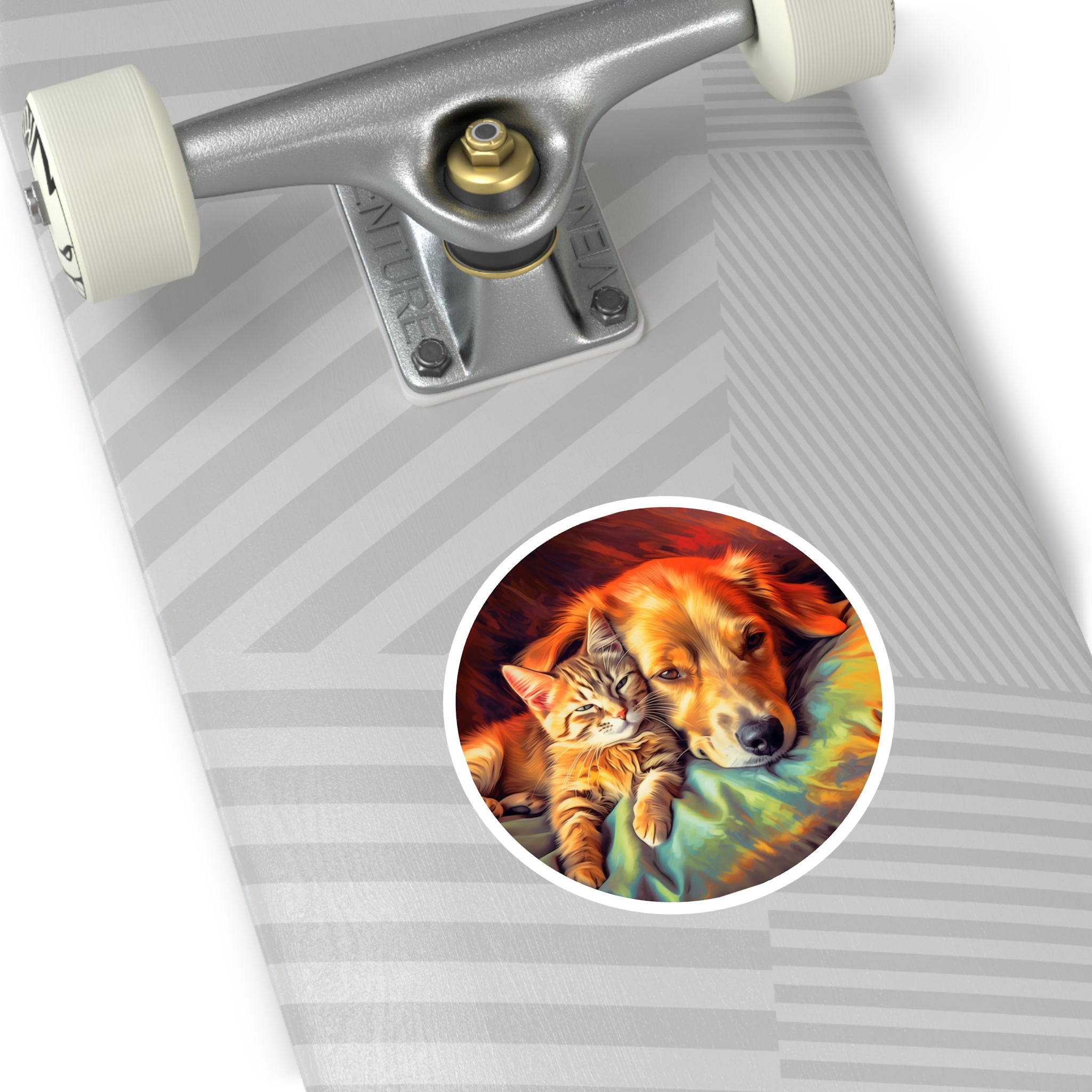 This warm and colorful cat and dog cuddle sticker captures the beauty of friendship—perfect for pet lovers and cozy art enthusiasts.Product Features:-Material: Premium Vinyl-Available in...