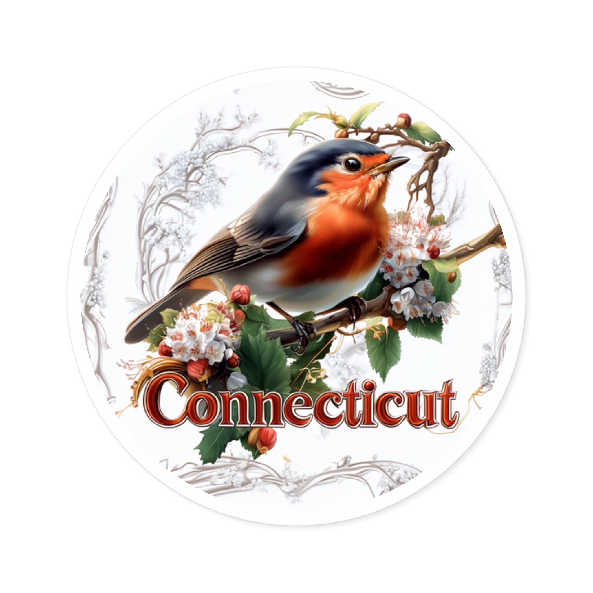 This charming sticker showcases Connecticut’s robin perched among mountain laurel blossoms, a beautiful blend of floral and wildlife art for any collection.Product Features:-Material: Premium Vinyl-Available...