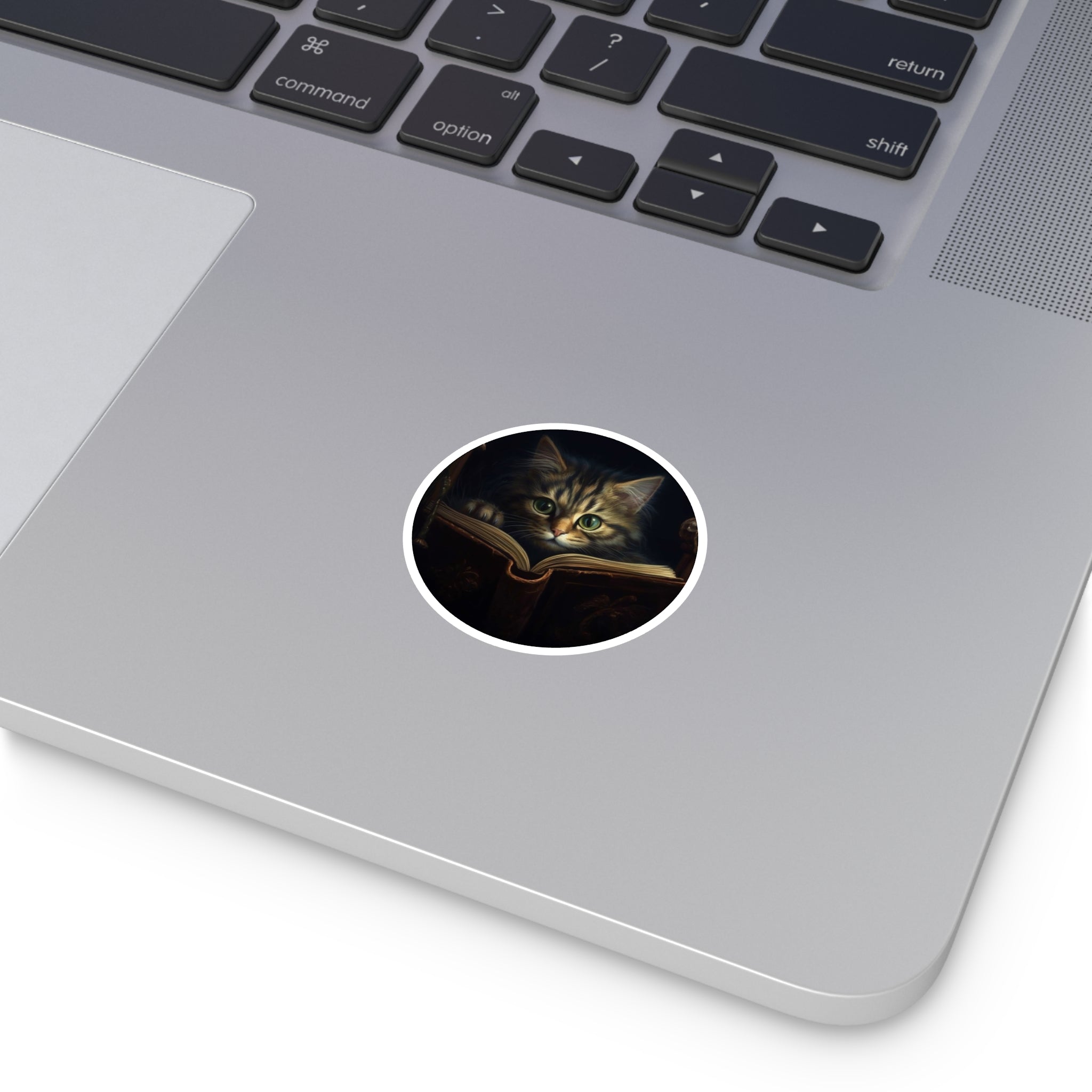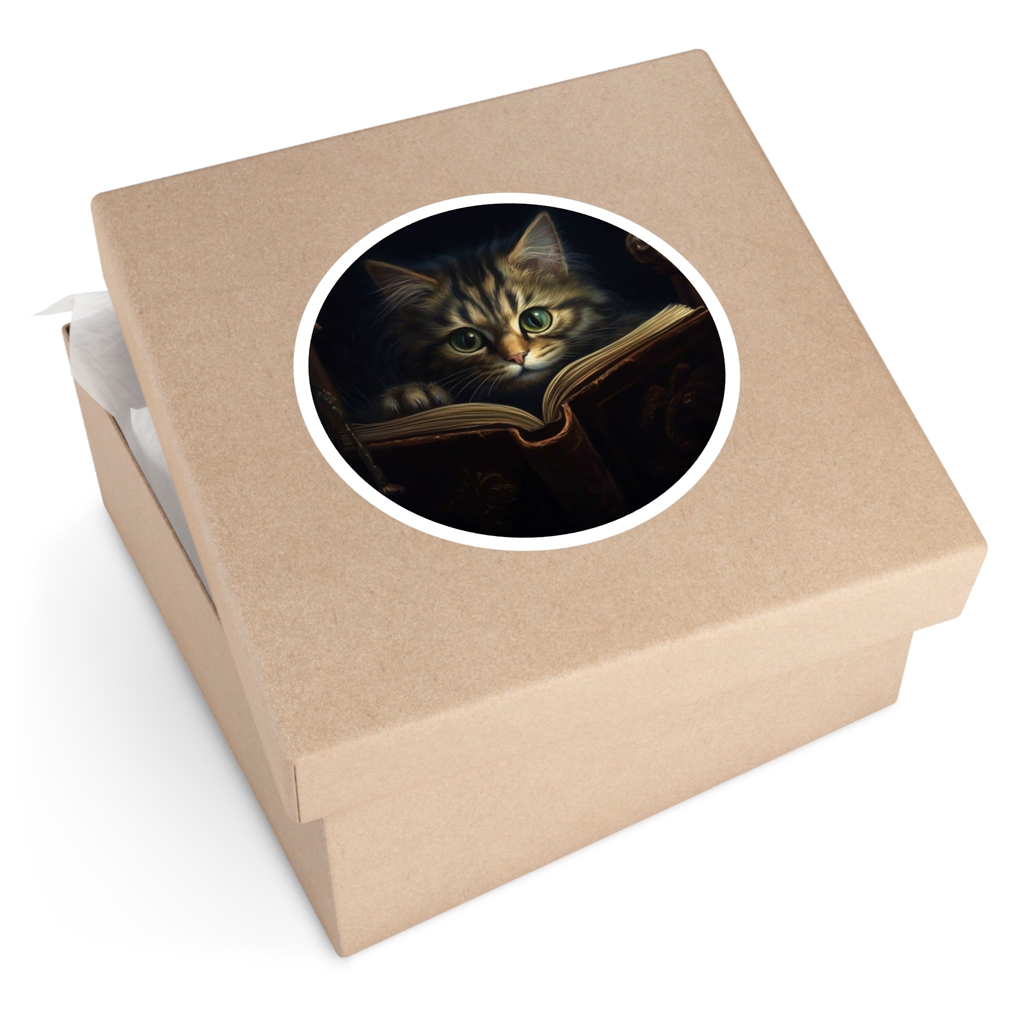 Curious Cat Reader, Adorable Animal Sticker, Book Art, Cozy Reading Gift