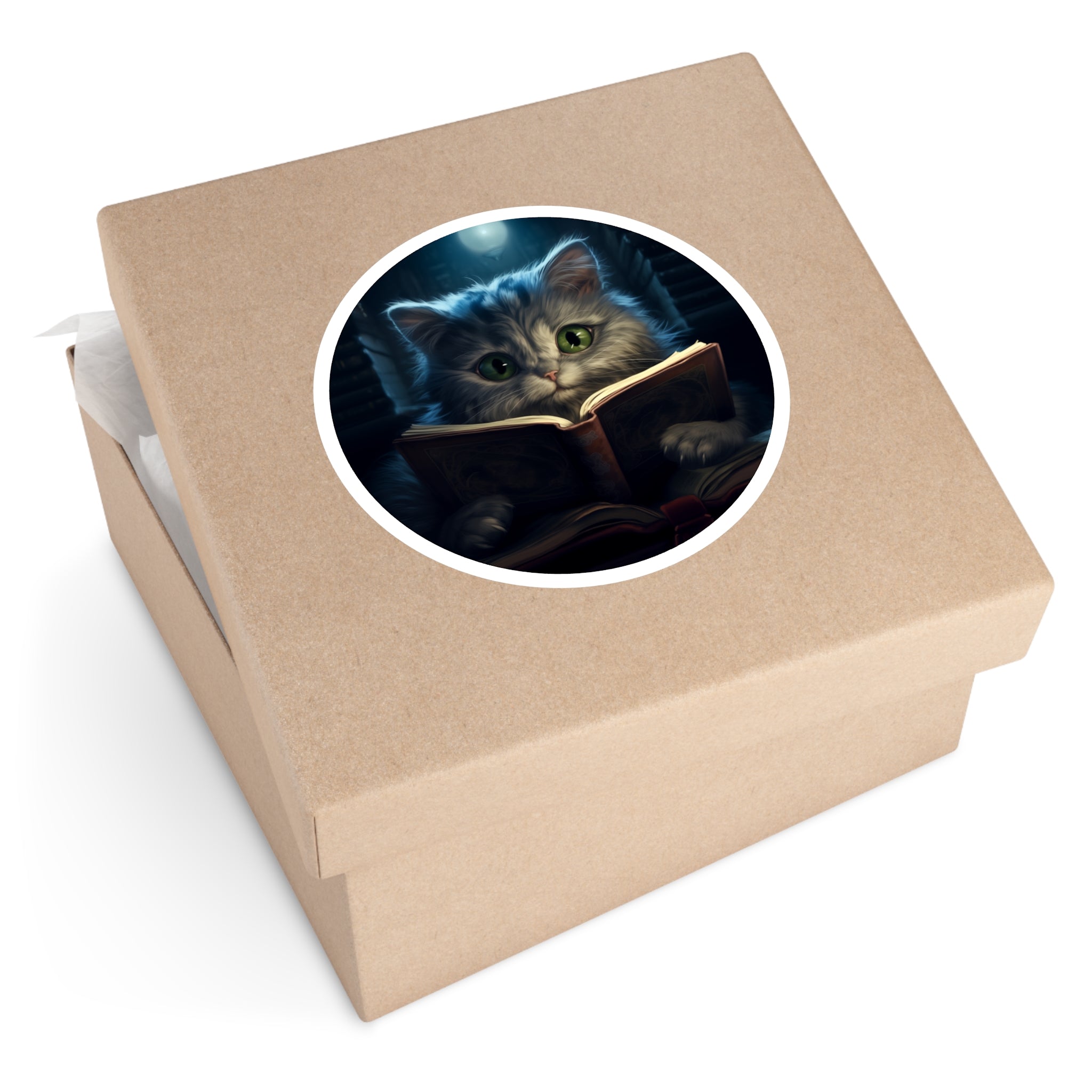 • Cute Reading Cat Sticker, Cozy Art Style, Laptop Decor Gift