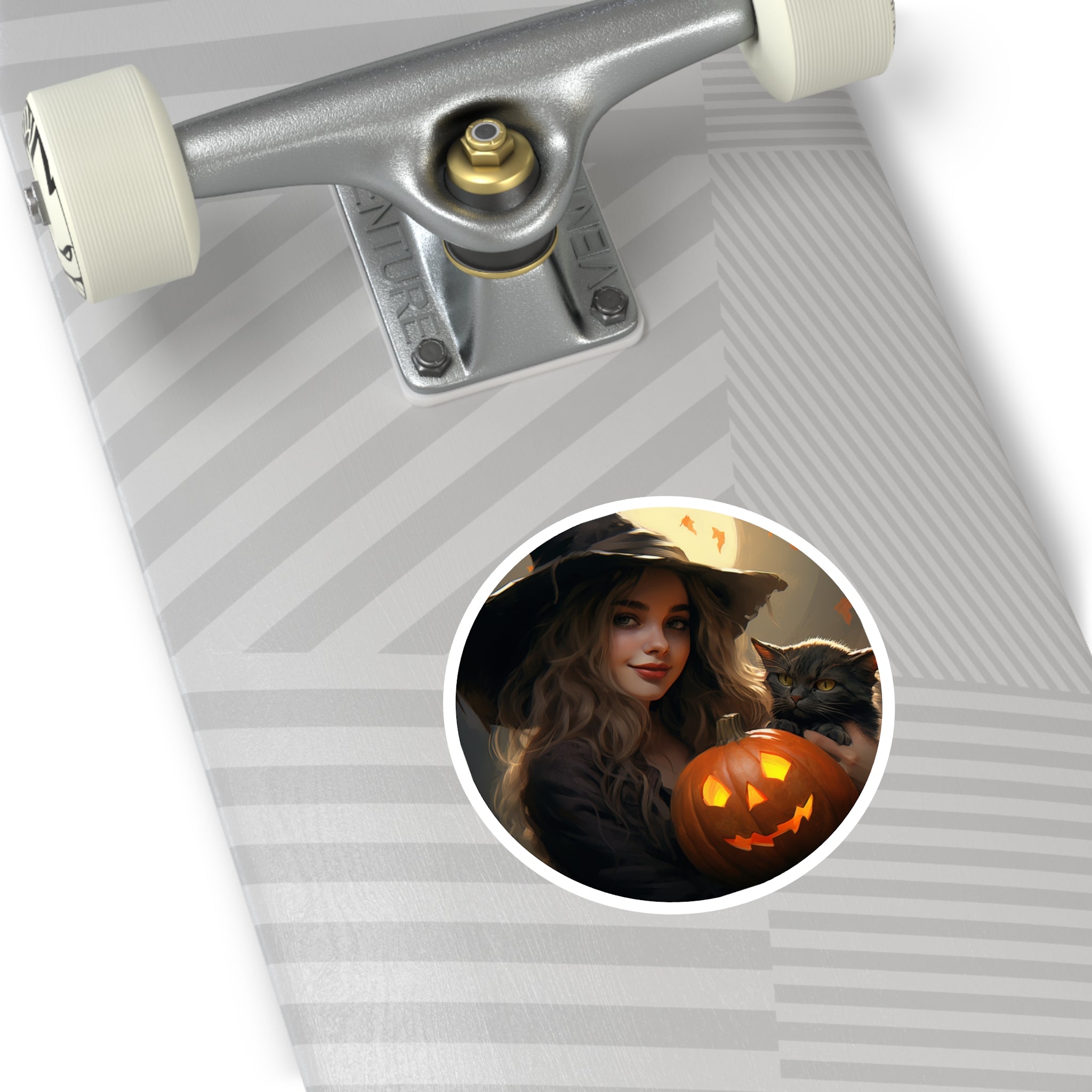 A charming witch holding a carved pumpkin with warm seasonal atmosphere. A fun and expressive Halloween character design.Product Features:-Material: Premium Vinyl-Available in 5 sizes-Finish: Matte-Water...