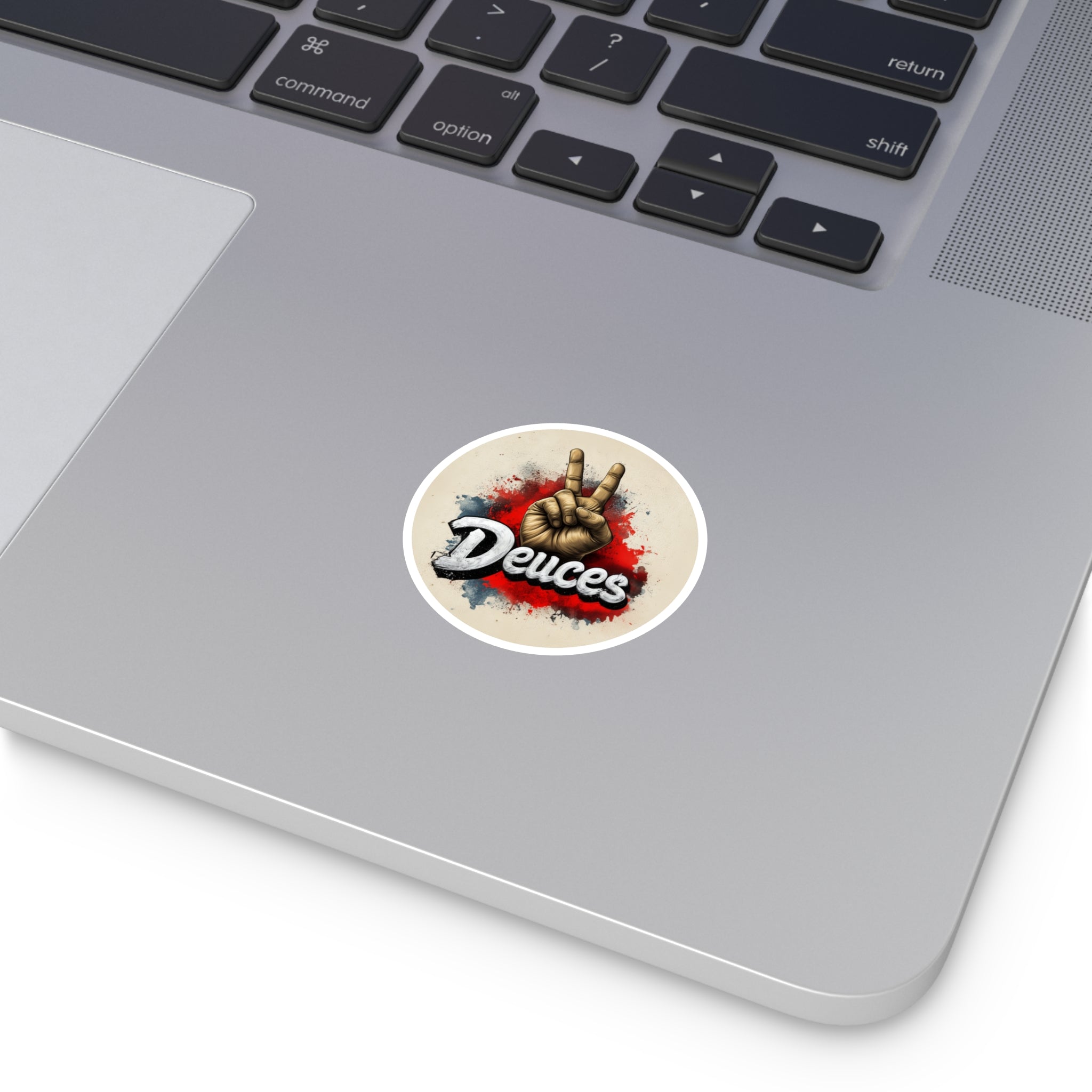 deuces hand sign sticker, bold graphic style, laptop decor, motivational gift