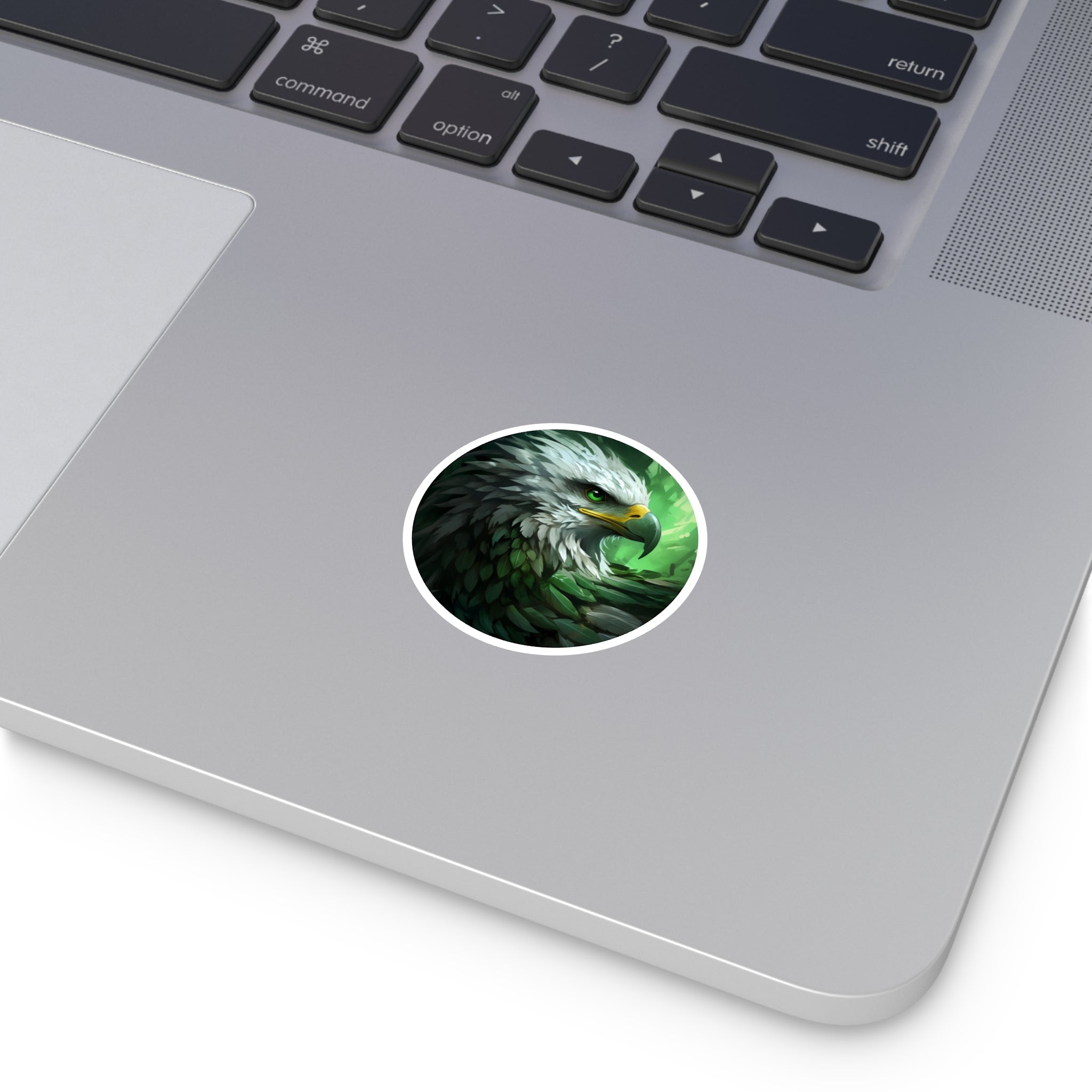 Eagle Head Sticker, Green Feathers, Power and Freedom, Nature Symbol Art