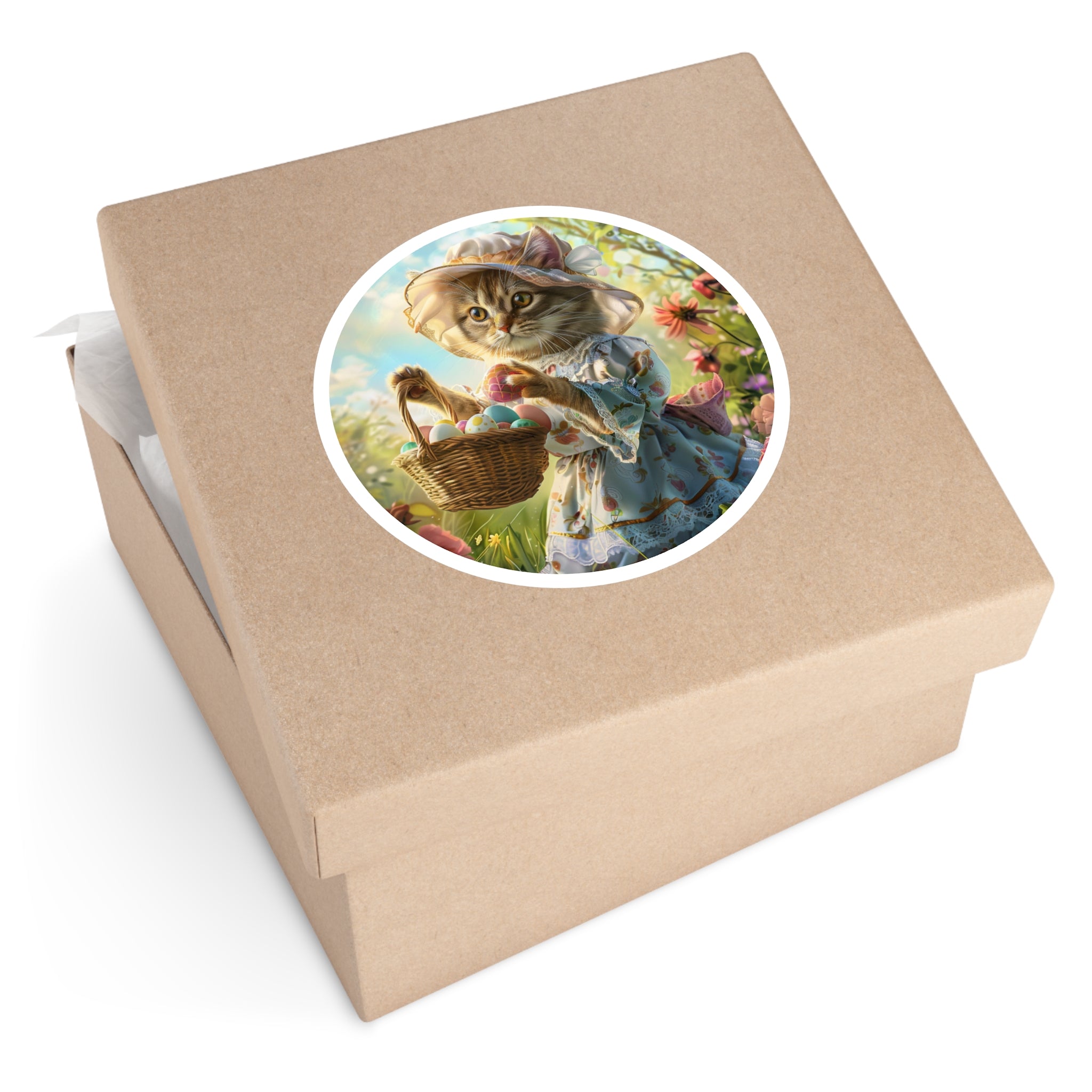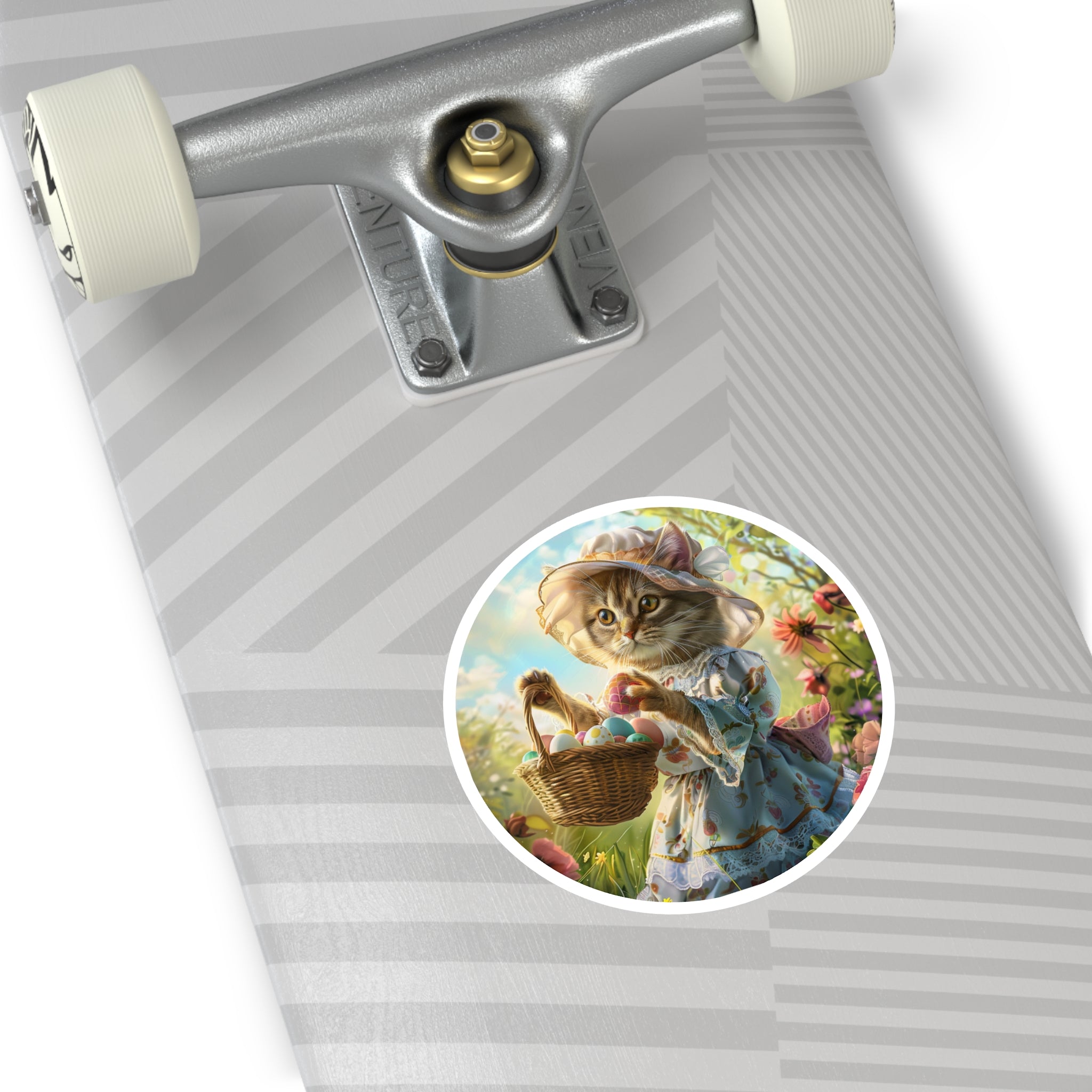 Easter Cat Sticker, Cute Animal Design, Spring Dress, Whimsical Art