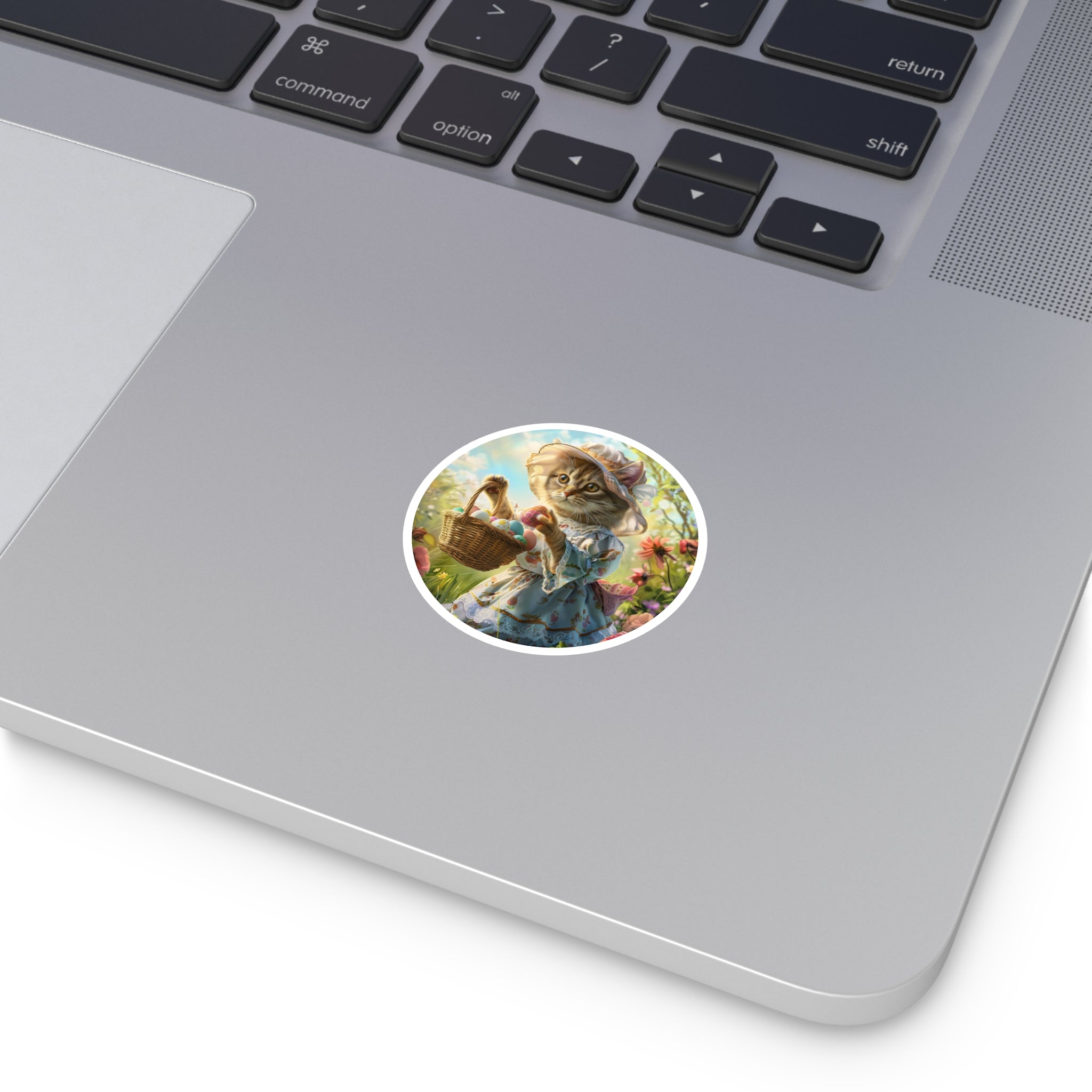 A charming cat dressed in spring attire holding a basket of colorful eggs—perfectly sweet for Easter and beyond.Product Features:-Material: Premium Vinyl-Available in 5 sizes-Finish: Matte-Water...