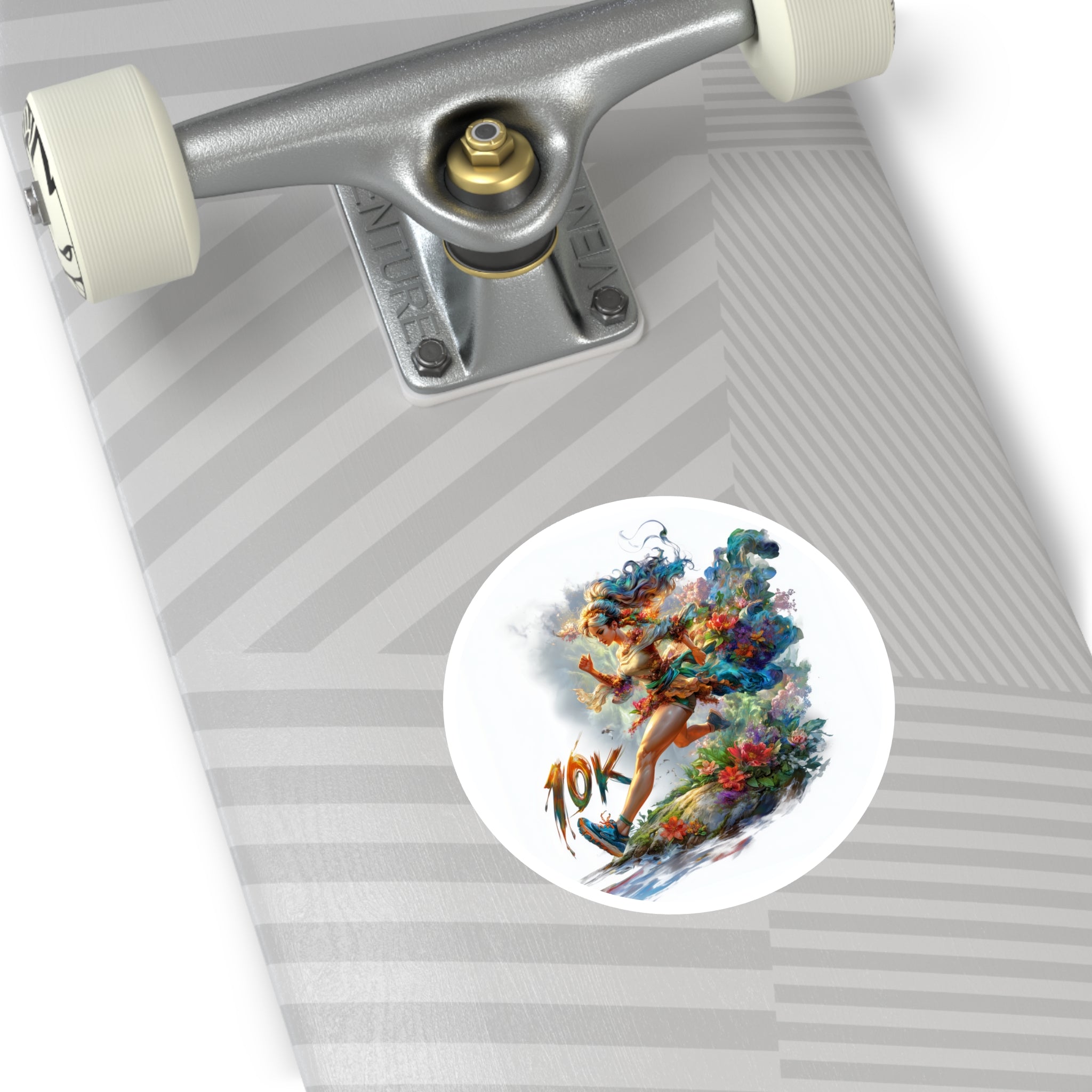 • Floral 10K Runner Sticker, Motivational Art, Colorful Fitness Design, Dynamic Aesthetic