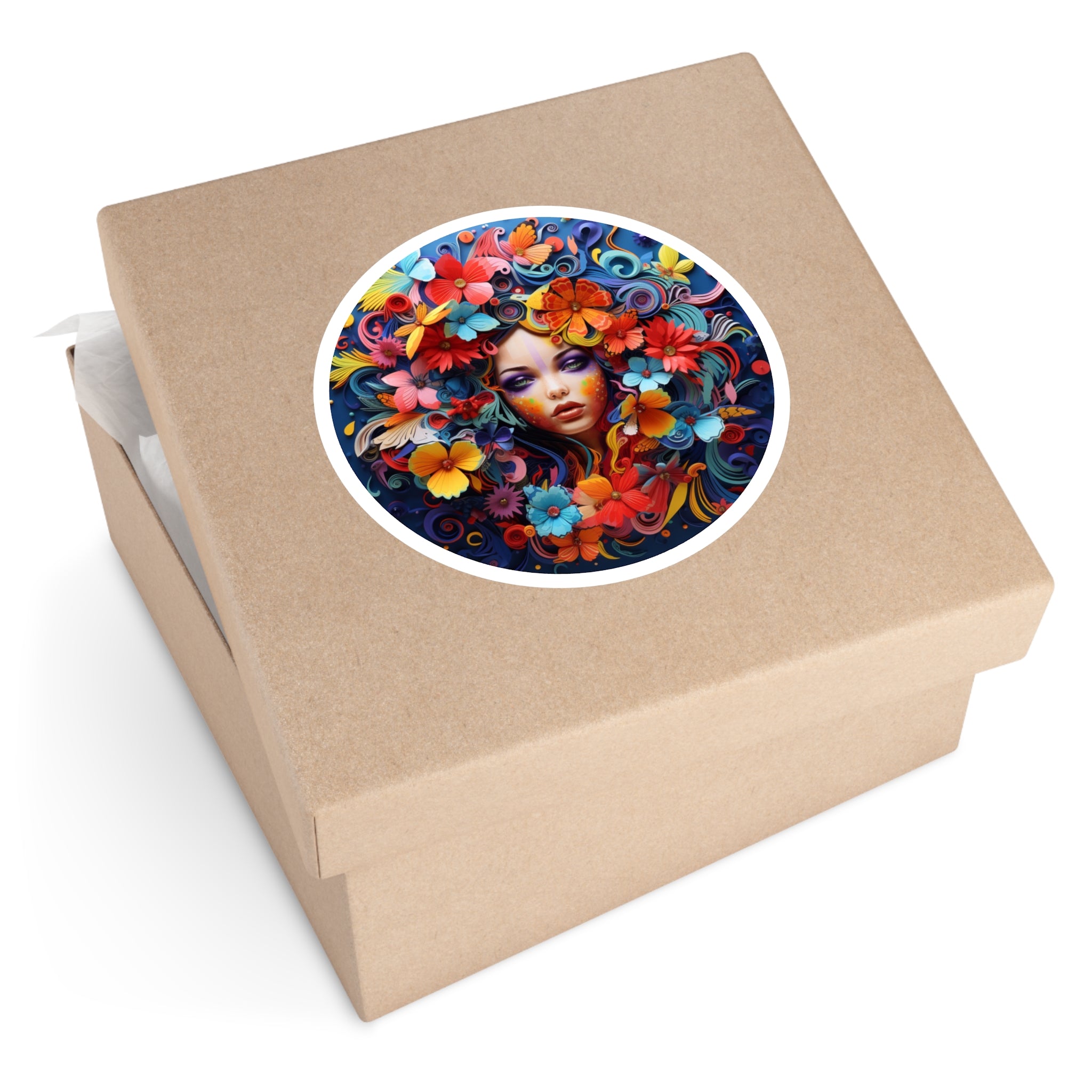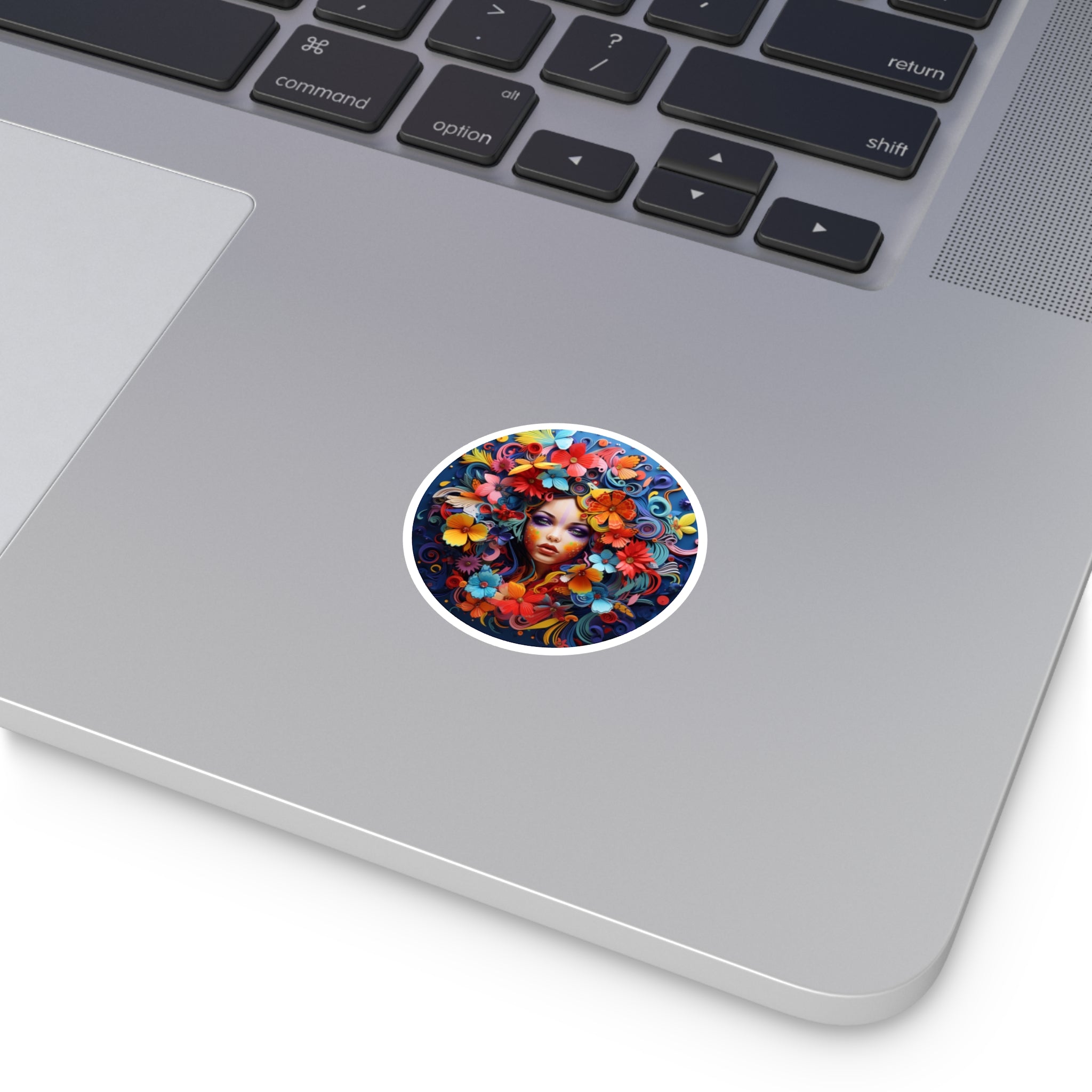 Floral Goddess Sticker, Colorful Abstract Art, Nature Design, Vibrant Expression