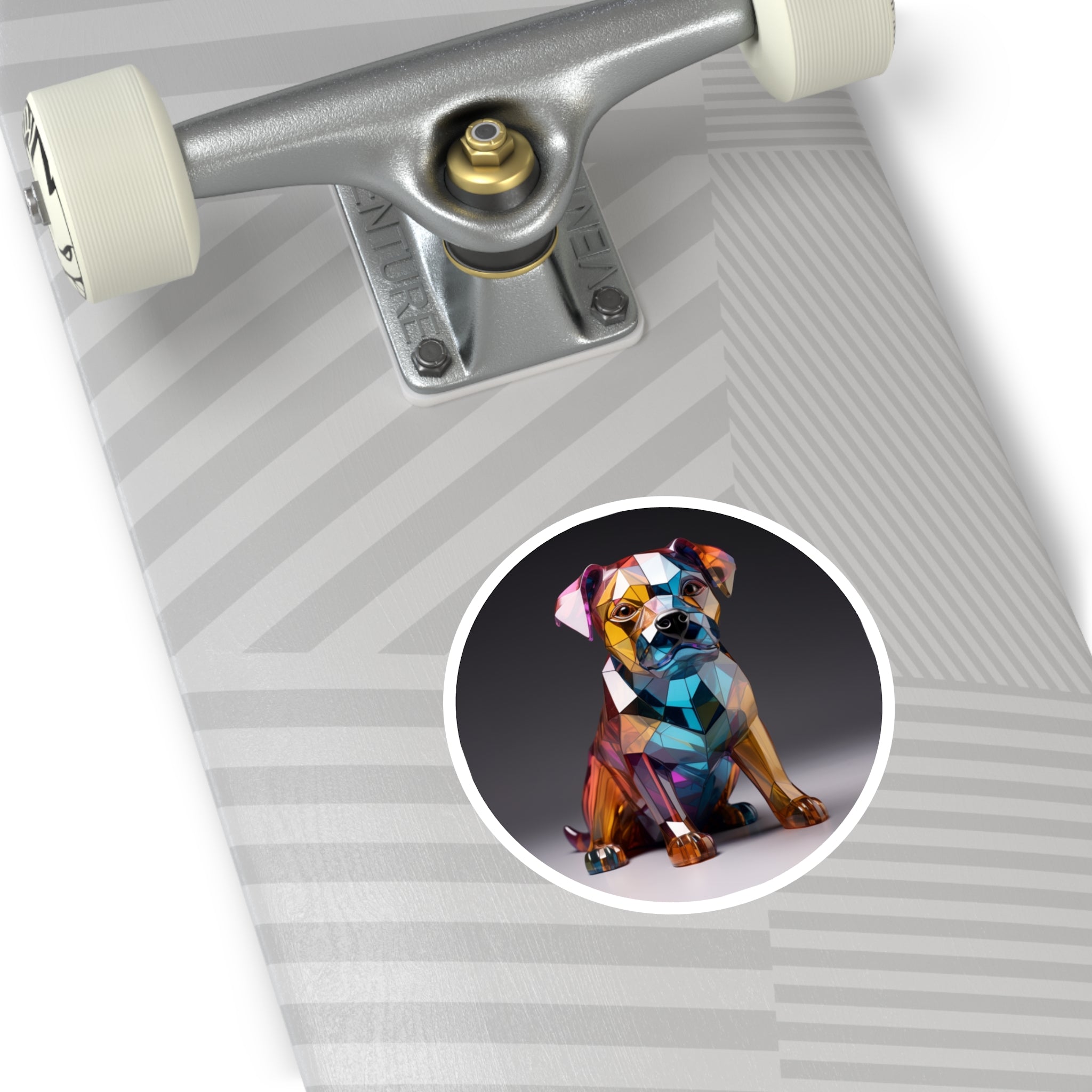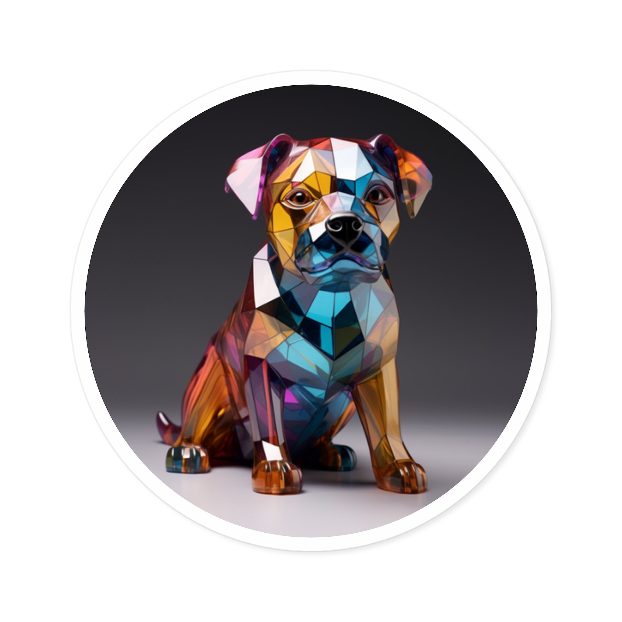 This striking glass-style bulldog design blends geometric color and reflection — a stunning sticker for modern art and dog enthusiasts alike.Product Features:-Material: Premium Vinyl-Available in...