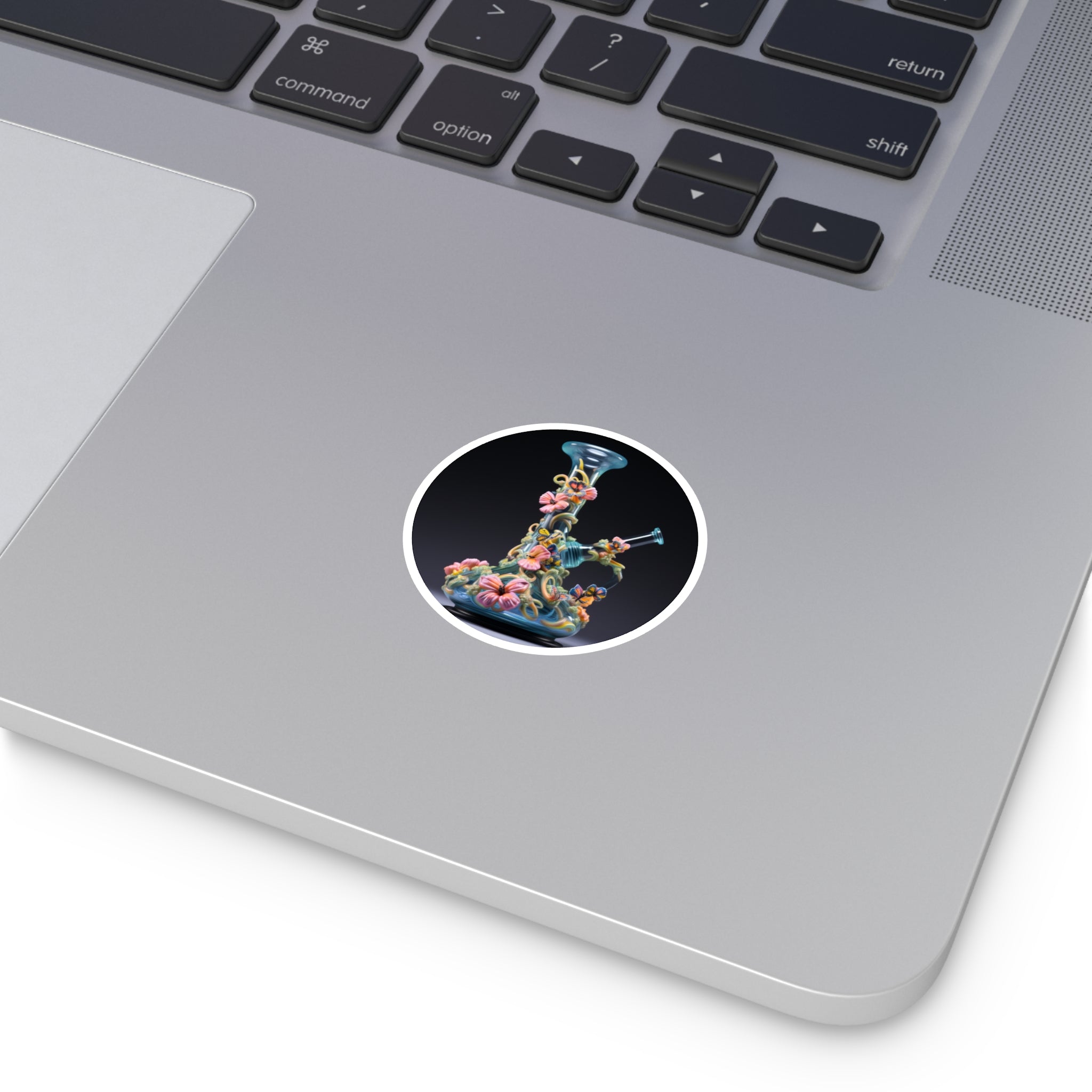 Glass Butterfly Vase, Floral Fantasy Sticker, Laptop Decal, Artistic Collector Gift