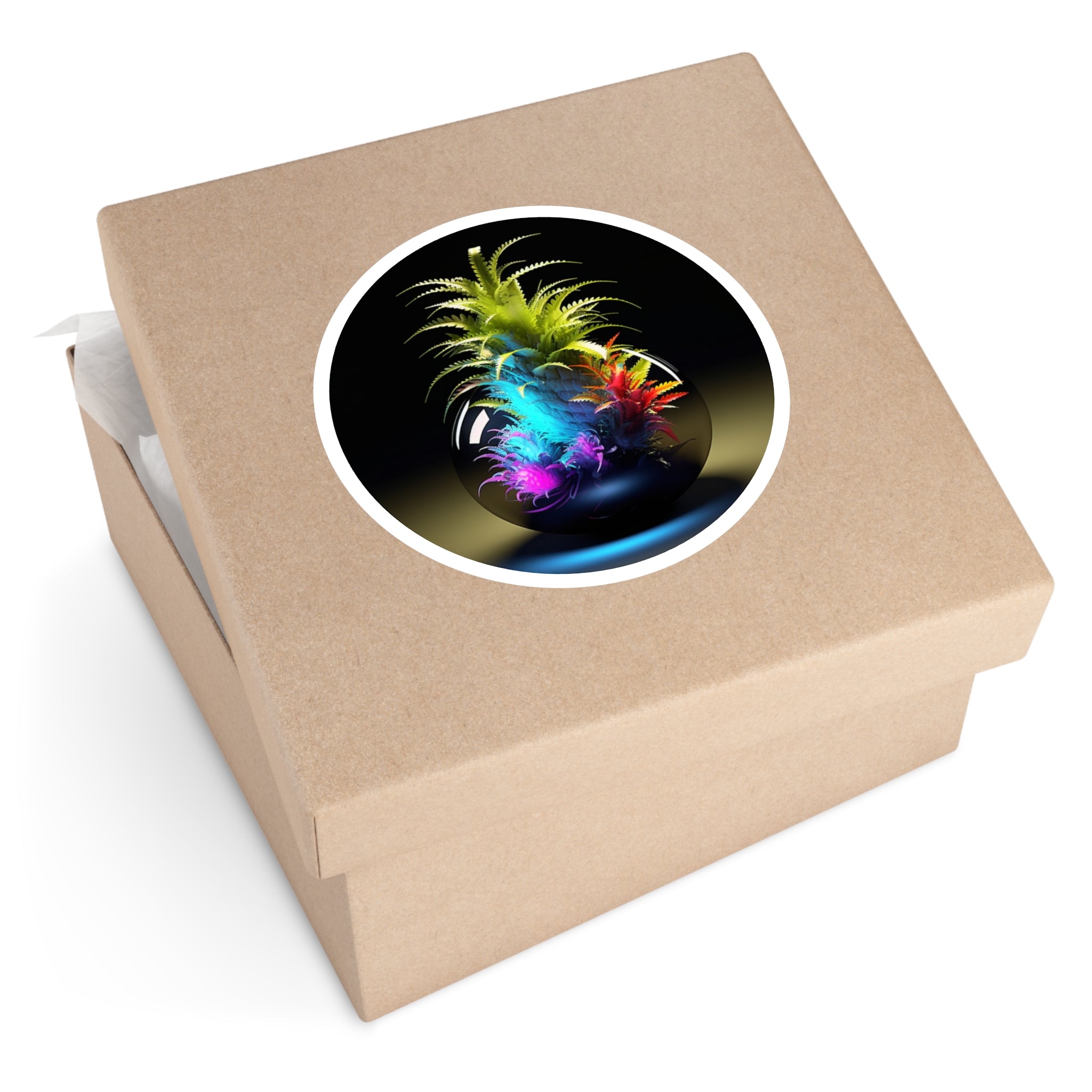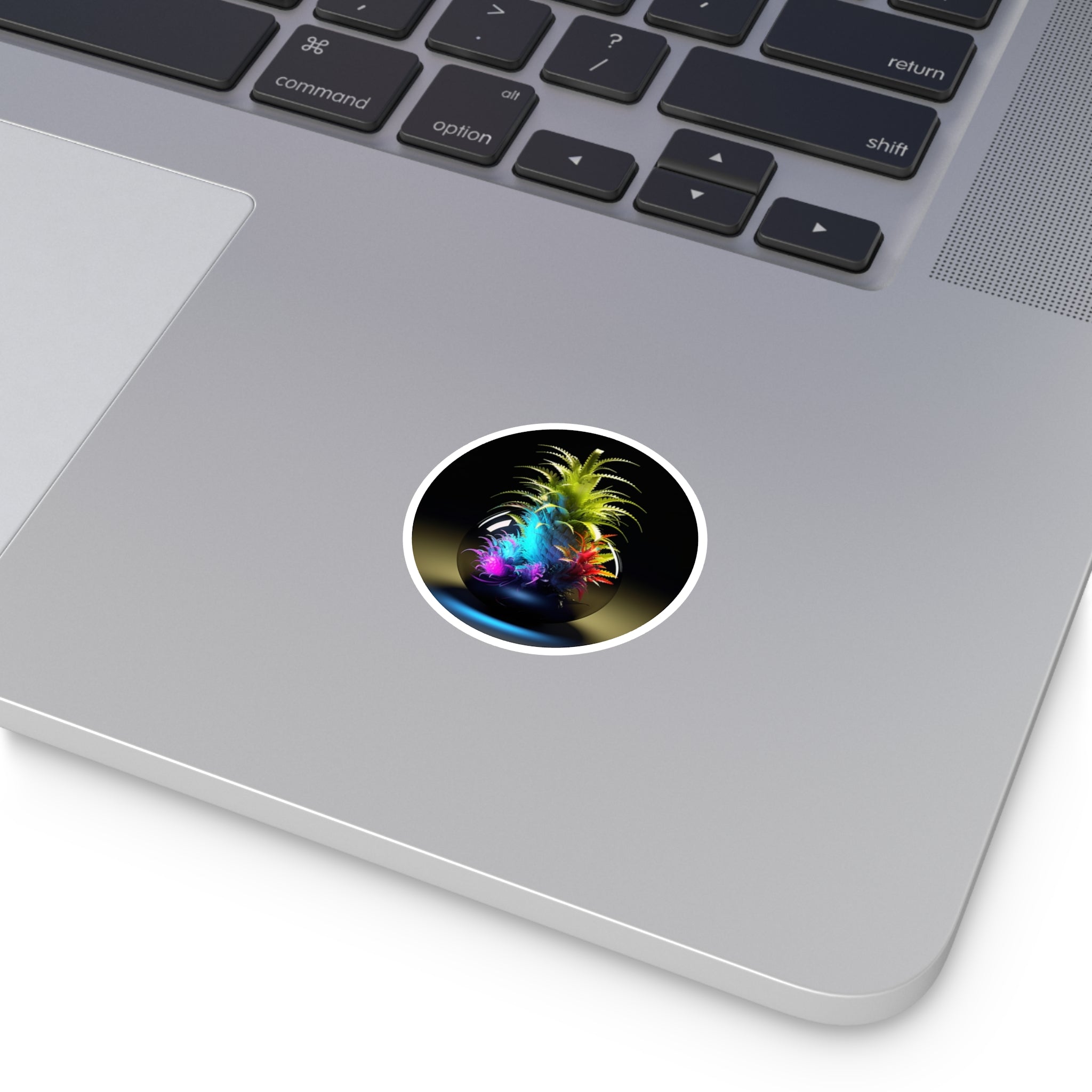 A stylized plant arrangement featuring bright layered leaves growing within a rounded glass-like sphere.Product Features:-Material: Premium Vinyl-Available in 5 sizes-Finish: Matte-Water and scratch resistant-Coated with...