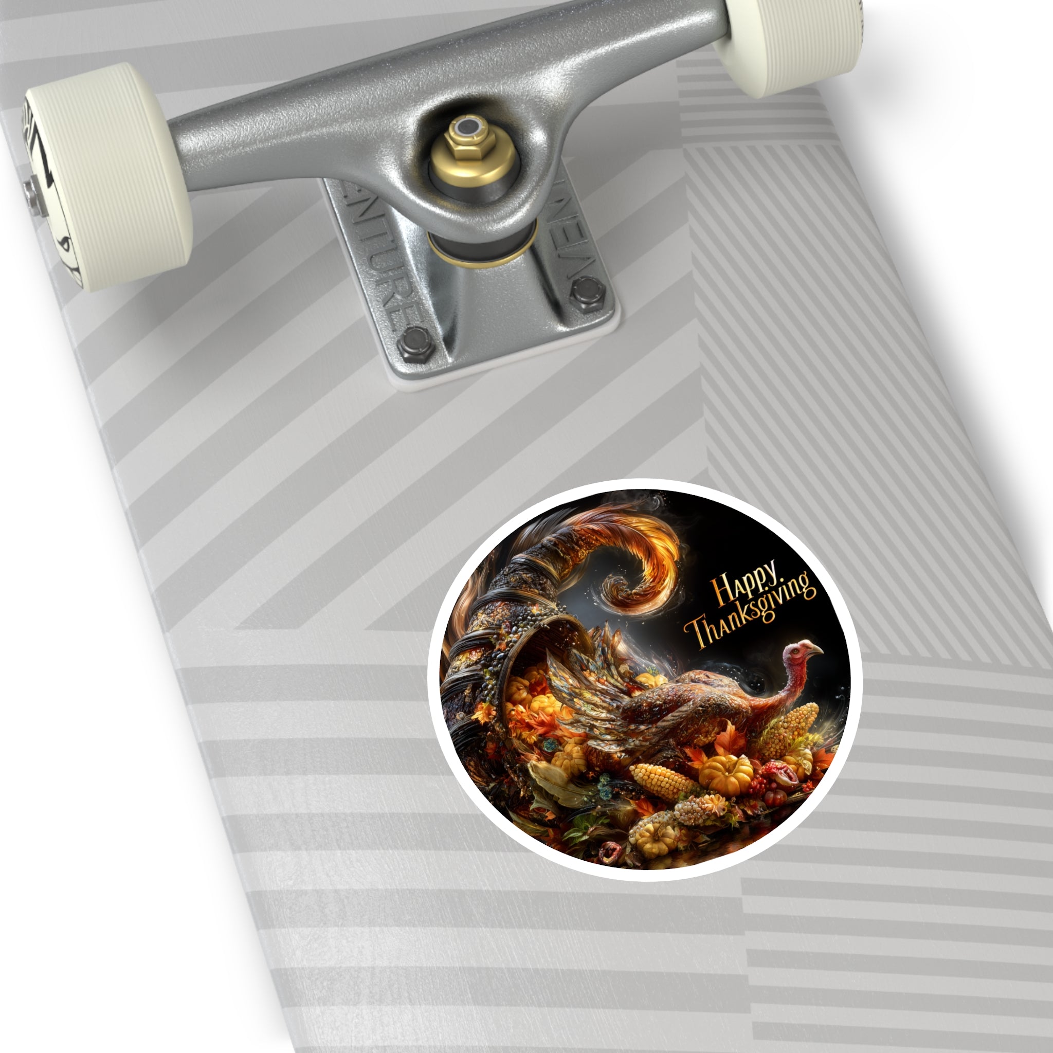 Happy Thanksgiving Cornucopia, Holiday Vinyl Sticker, Autumn Decor, Festive Gift Design