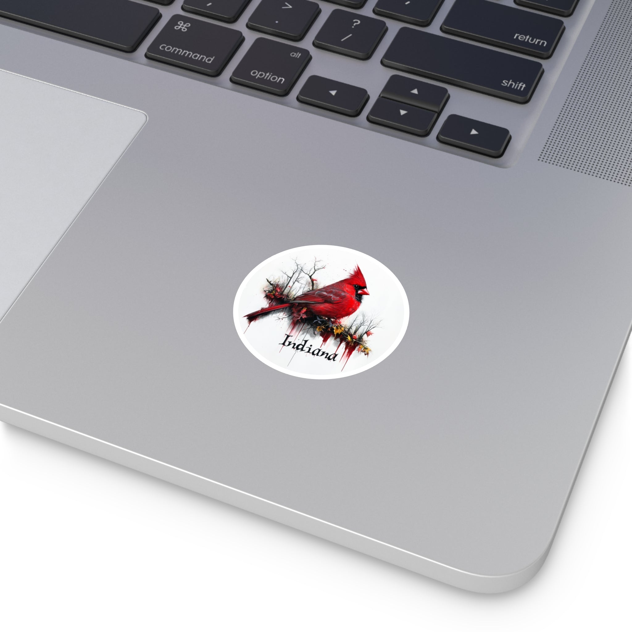 Indiana Cardinal Art Sticker, State Bird Design, Autumn Branch Theme, Realistic Style