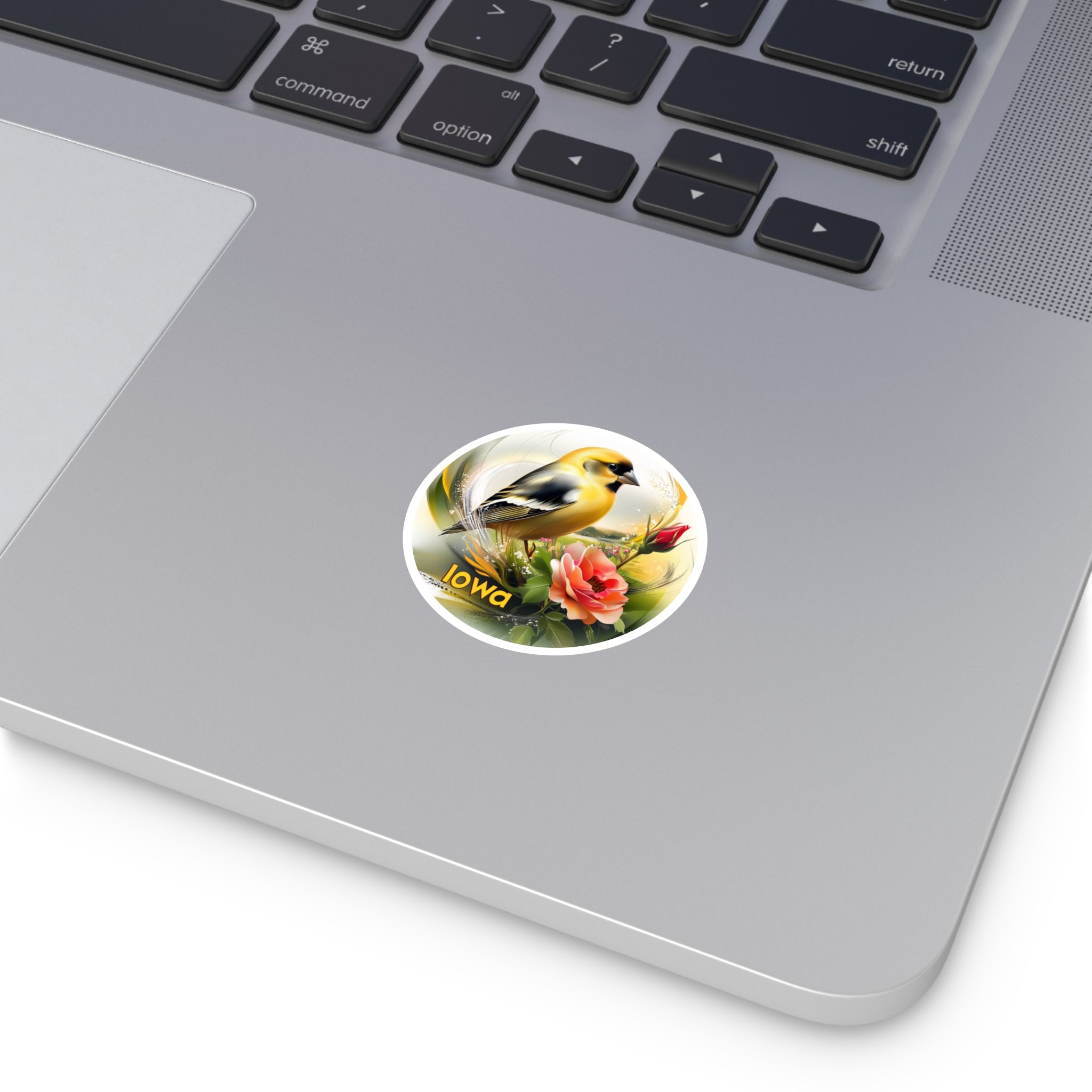 This radiant sticker features Iowa’s state bird and flower — the Eastern Goldfinch perched among Prairie Roses — celebrating the natural charm of the Midwest.Product...