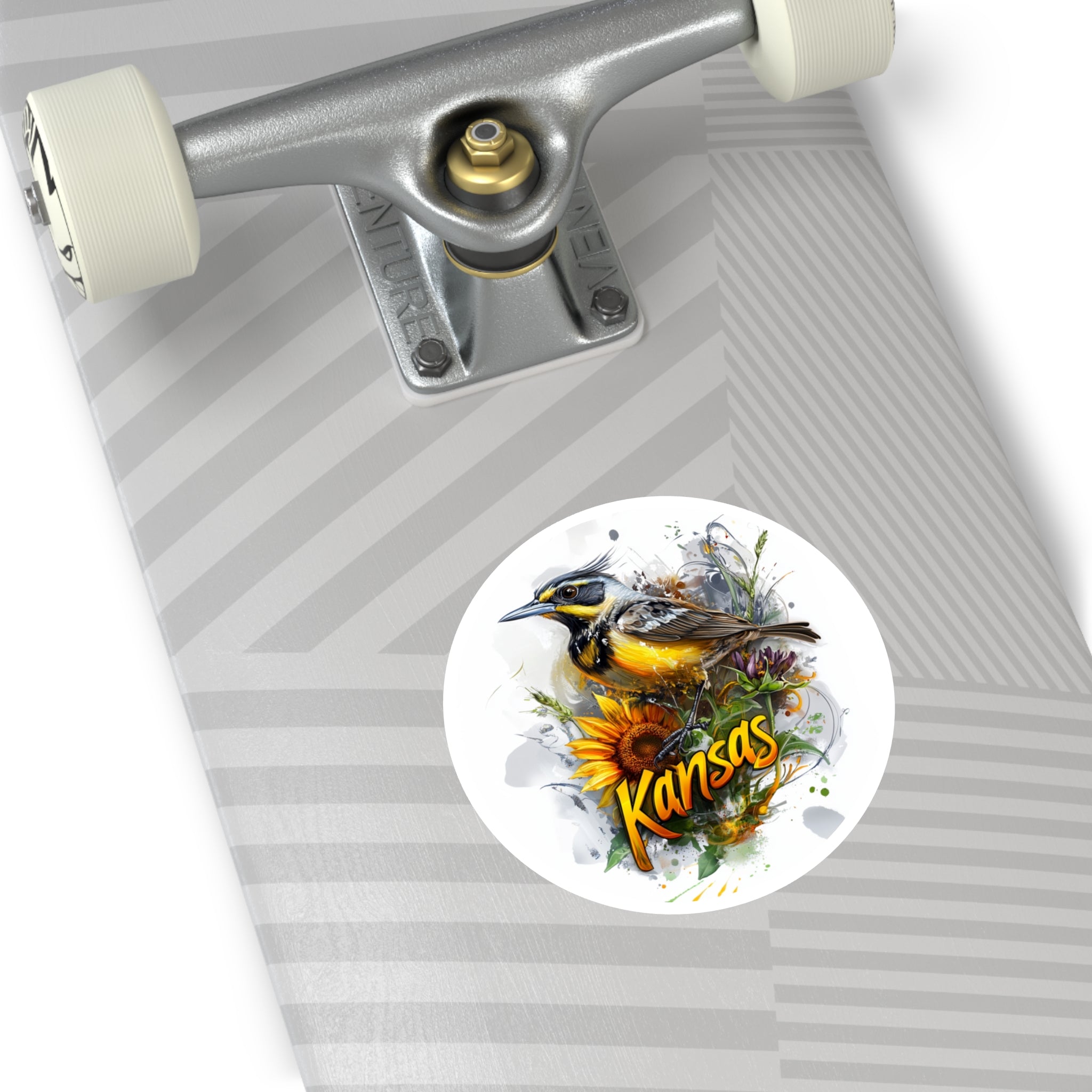 • Kansas Meadowlark Sticker, Sunflower Design, State Pride, Nature Art