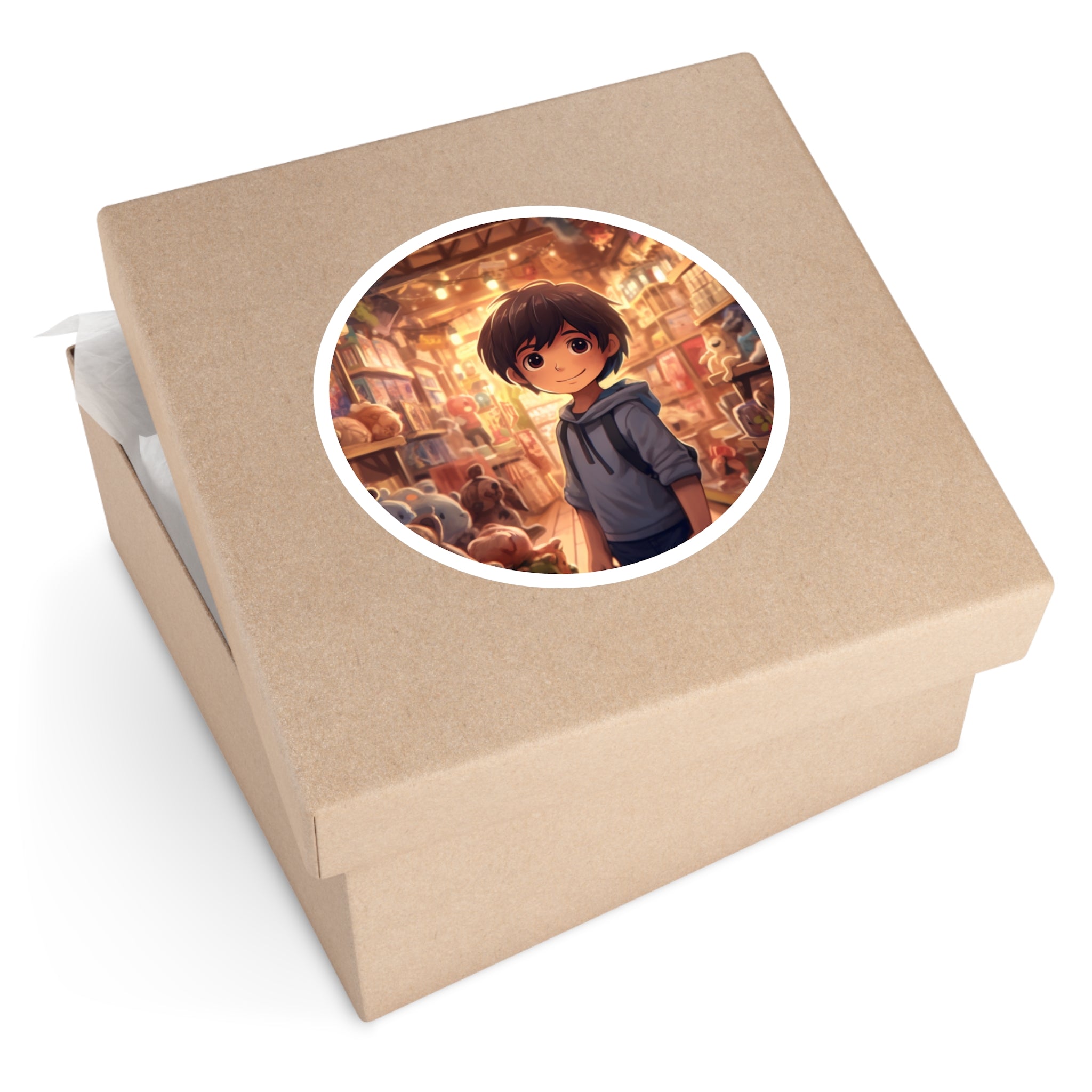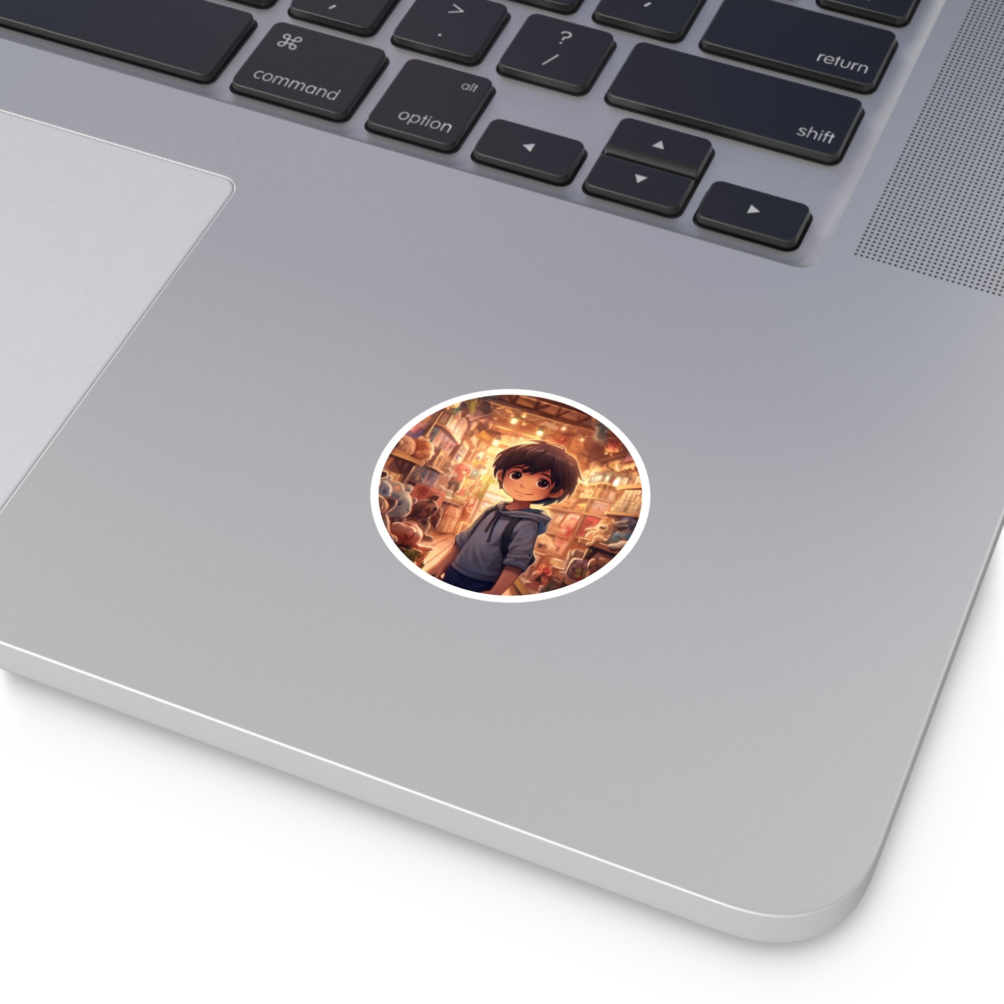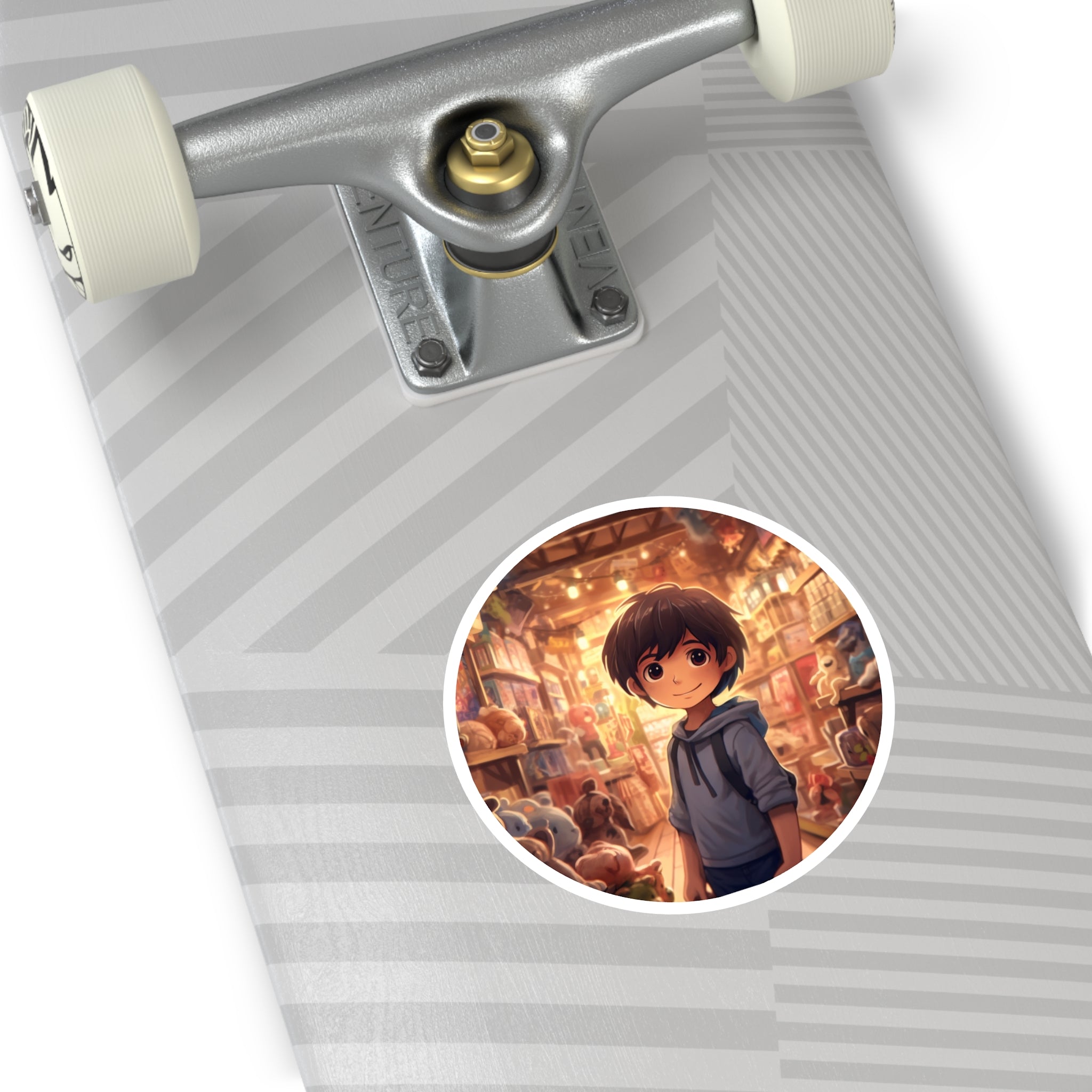 • Kid in Toy Store, Fun Art Sticker, Playful Decor, Creative Gift