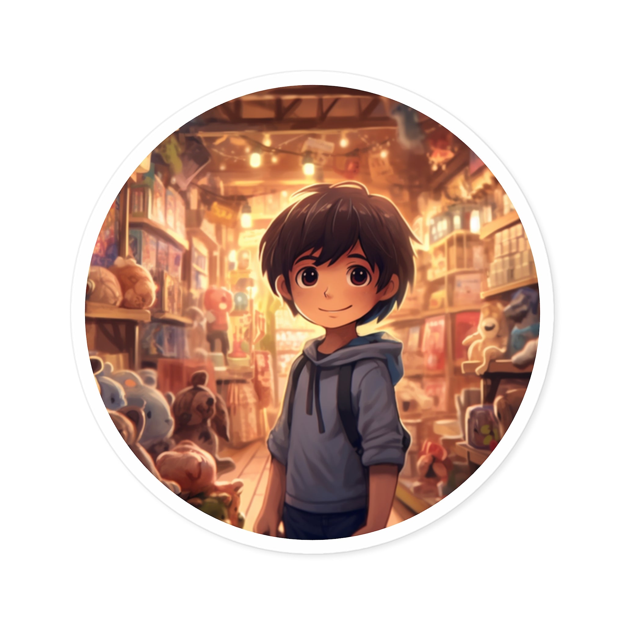 This vibrant illustration shows a child exploring a lively toy store scene, creating a playful and energetic sticker perfect for decorating personal items.Product Features:-Material: Premium...