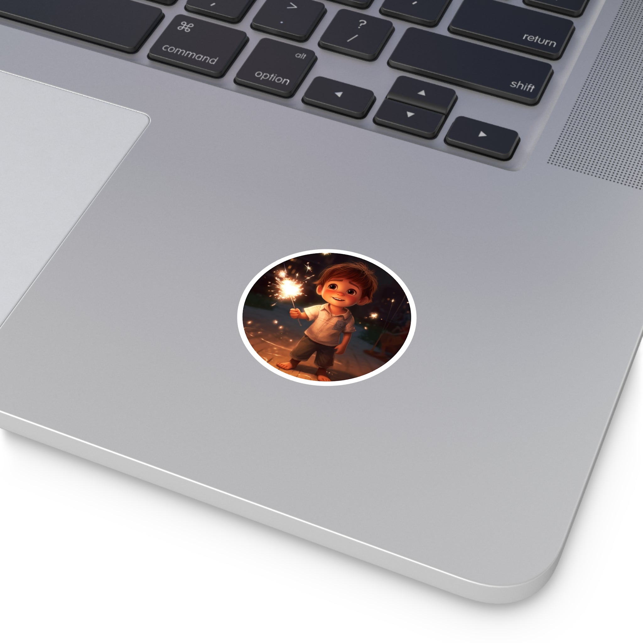This cheerful artwork features a child enjoying a sparkler, offering a heartwarming and lively sticker for journals, cases, and accessories.Product Features:-Material: Premium Vinyl-Available in 5...