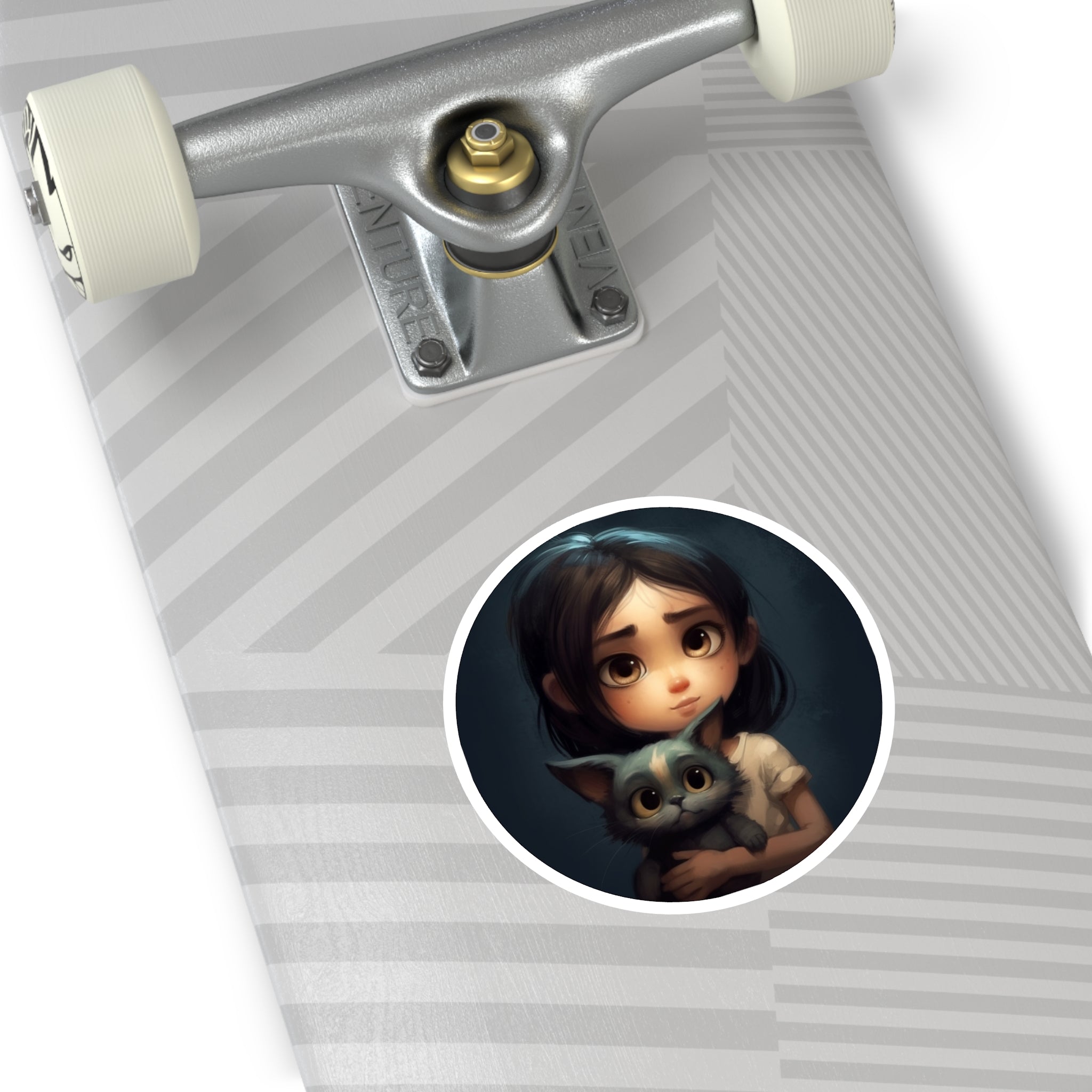Little Girl & Kitten Hug, Heartwarming Sticker, Gift Idea, Cute Moment