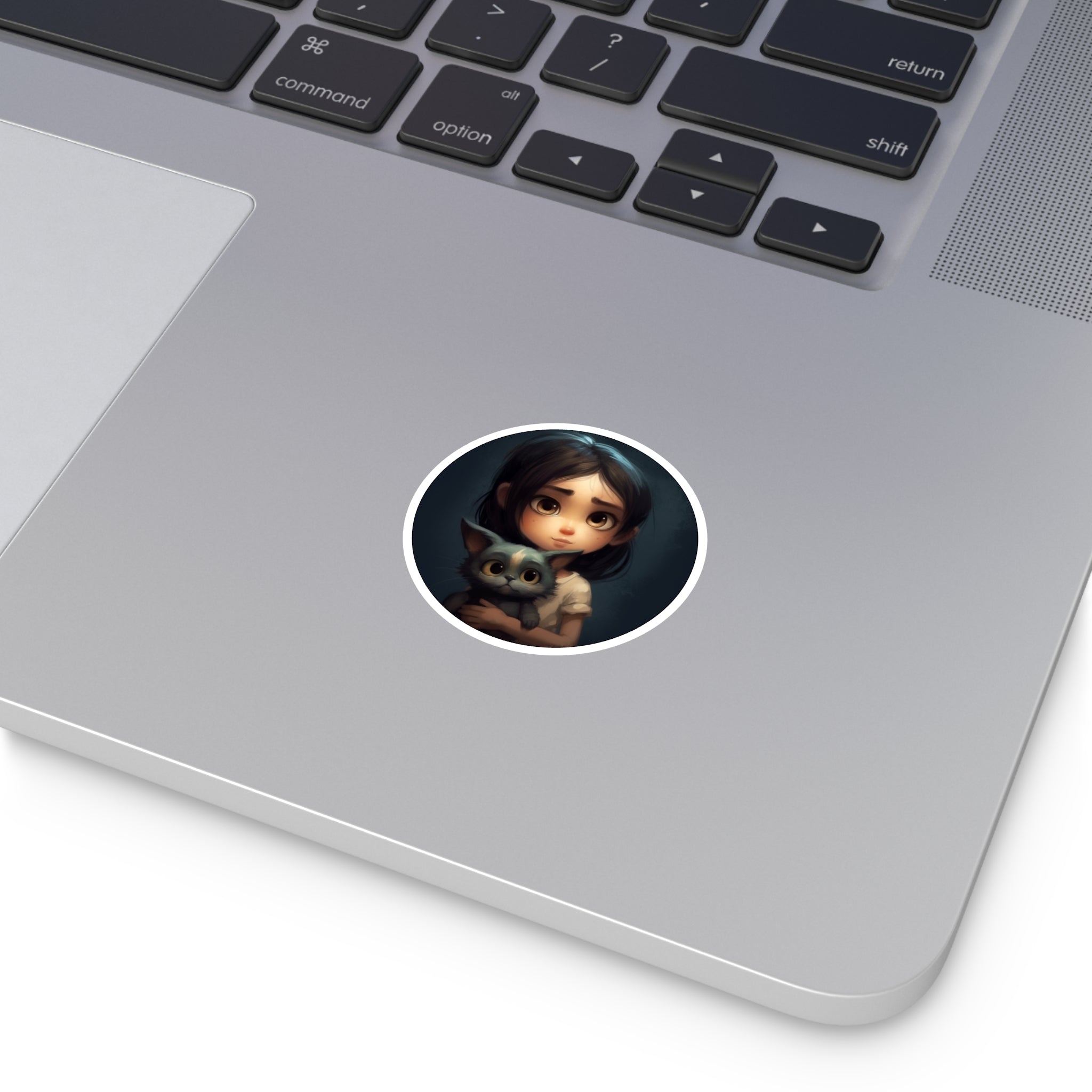 • Little Girl & Kitten Hug, Heartwarming Sticker, Gift Idea, Cute Moment