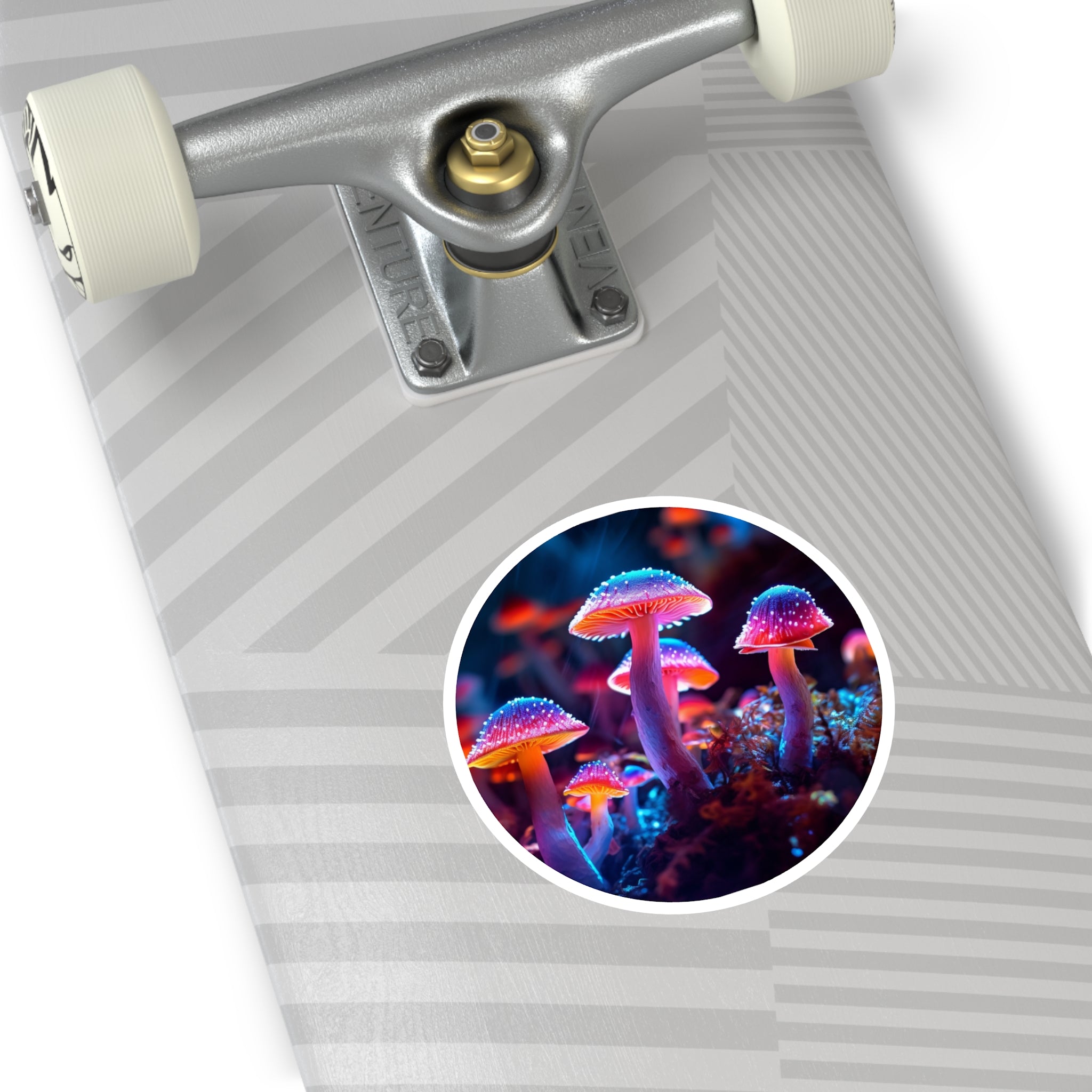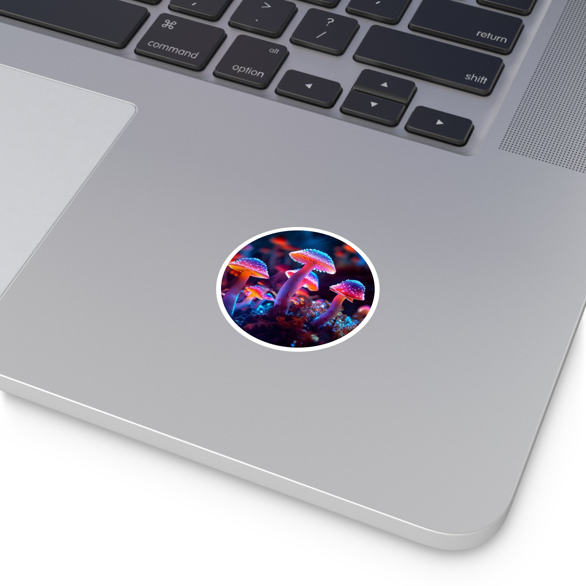 • Mushroom Glow Scene, Forest Art Sticker, Nature Decor, Detailed Gift