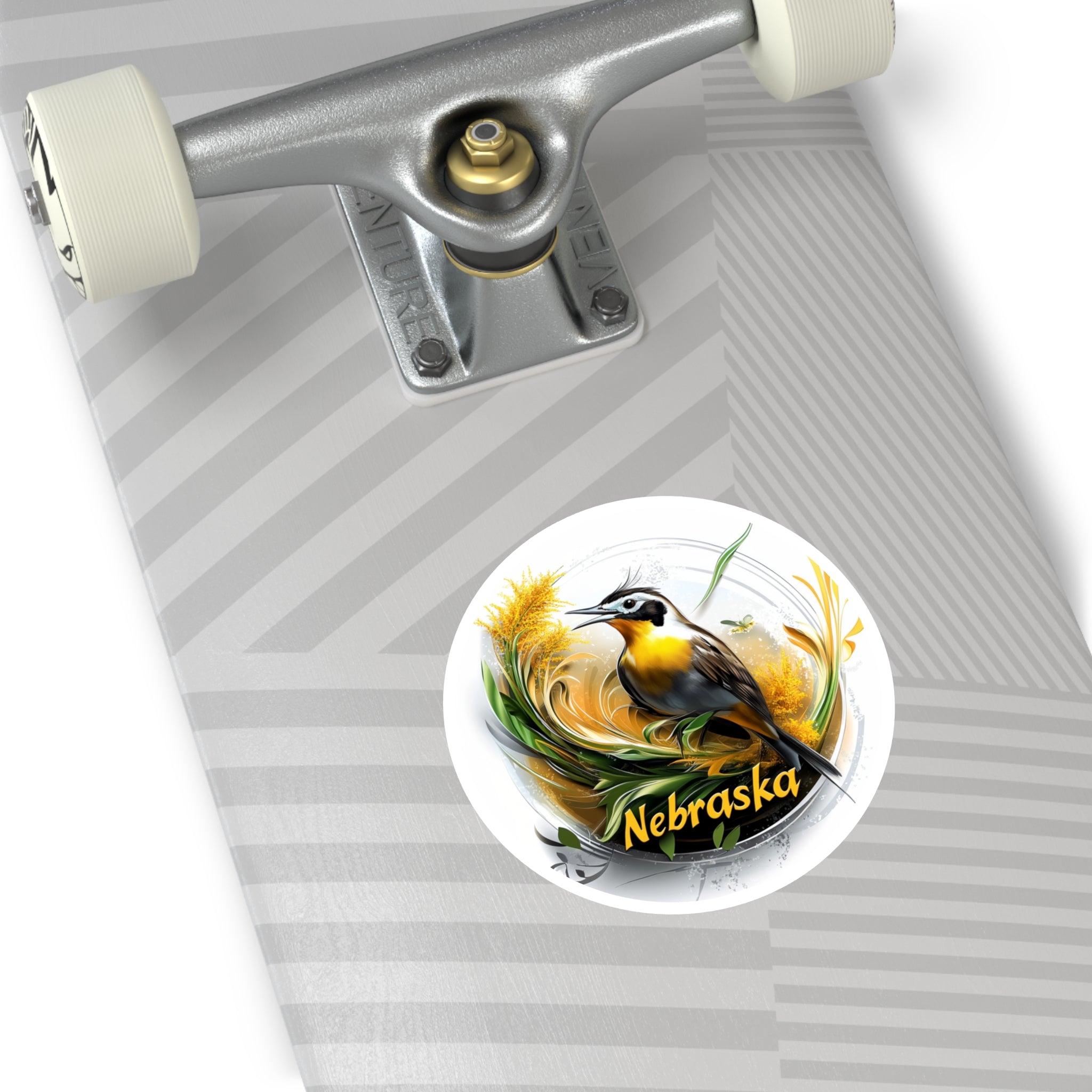 The Nebraska Western Meadowlark with goldenrod blooms in a beautiful nature-inspired design celebrating Midwestern charm.Product Features:-Material: Premium Vinyl-Available in 5 sizes-Finish: Matte-Water and scratch resistant-Coated...