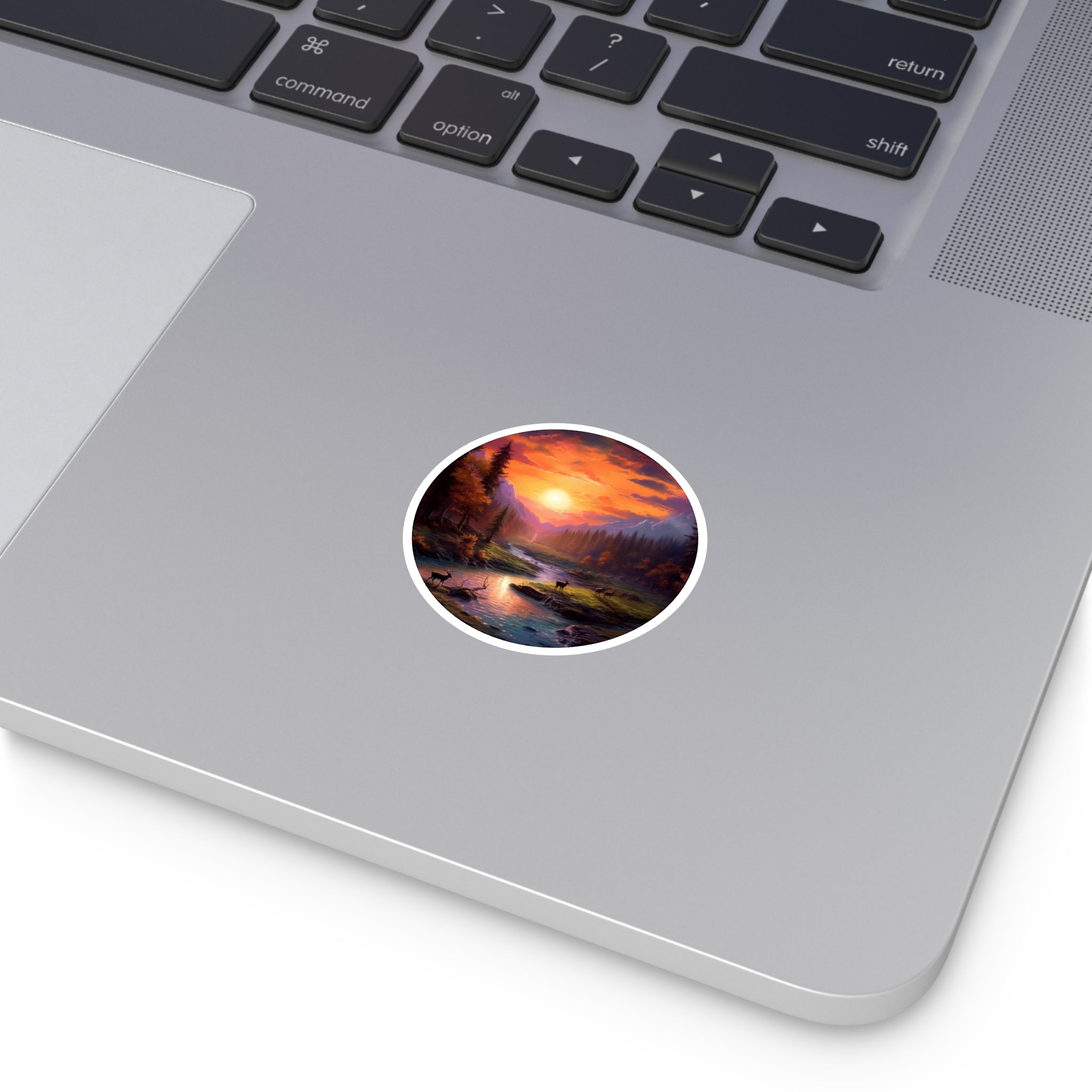 Sunset River Valley, Peaceful Nature Sticker, Outdoor Scene, Scenic Art