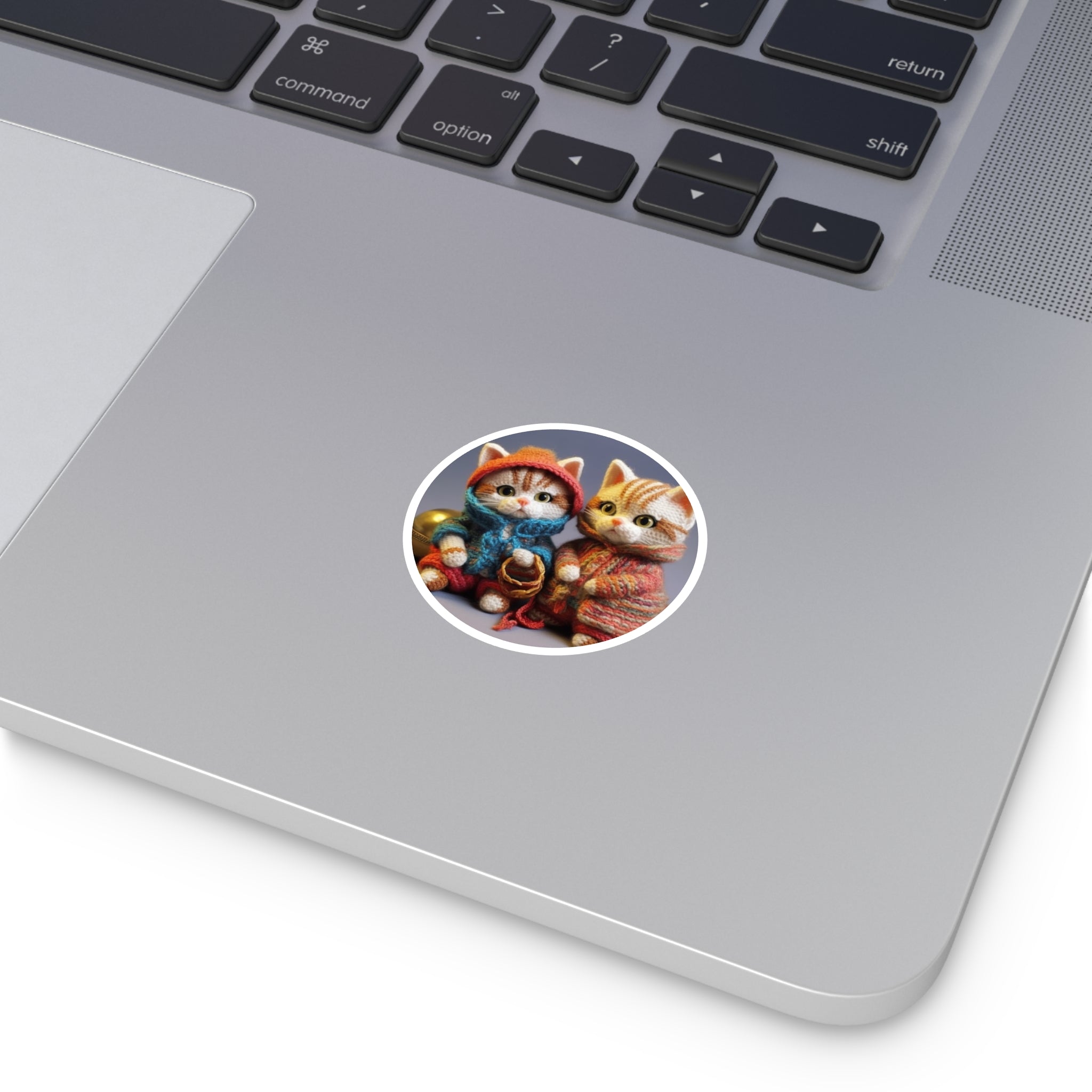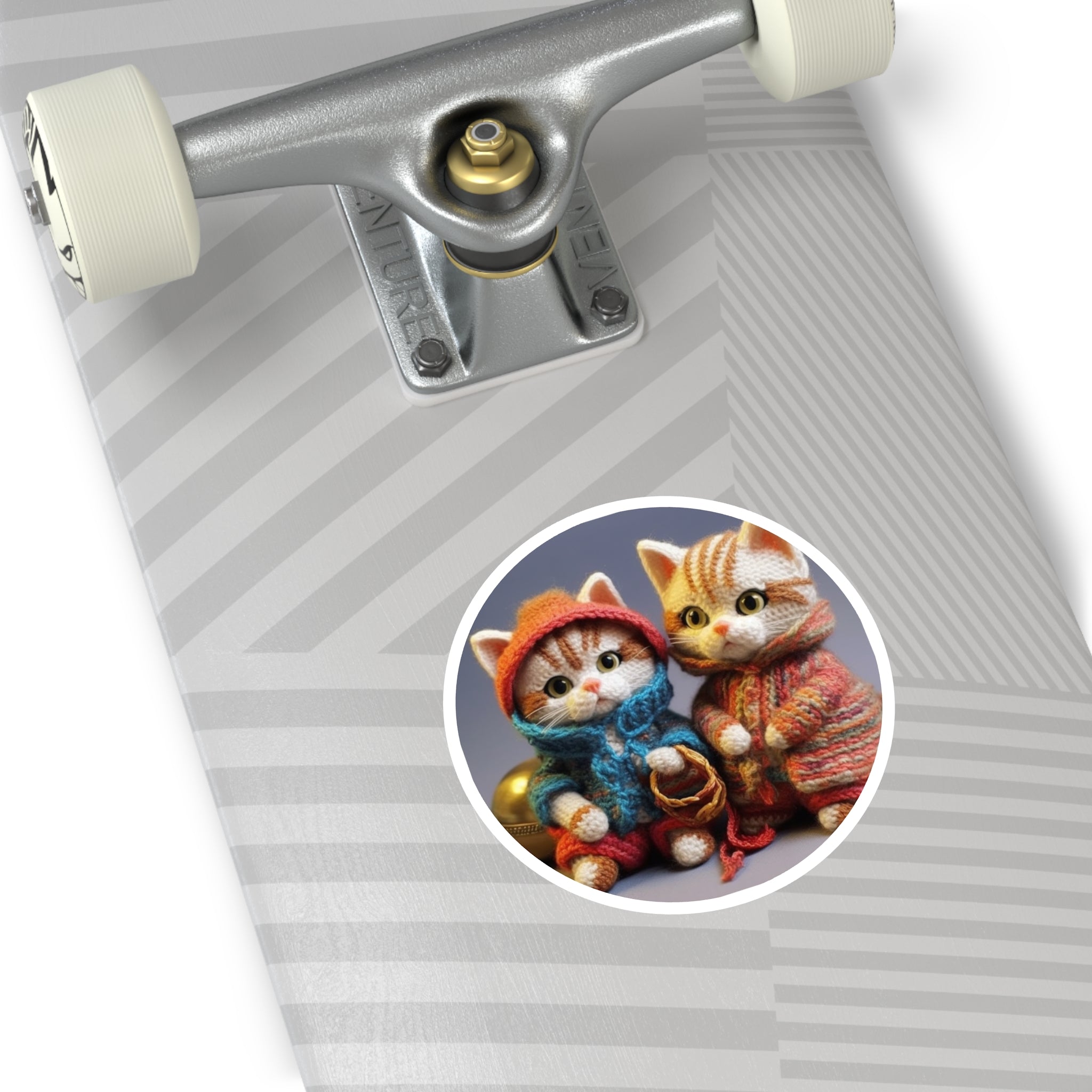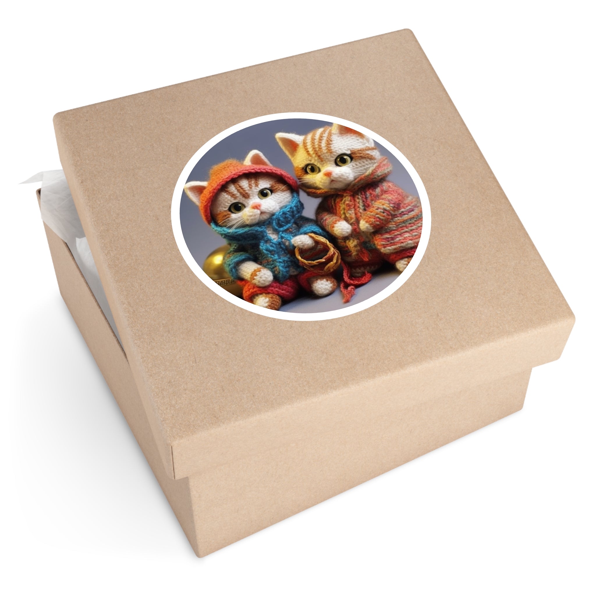 Yarn Cat Duo Sticker, Cute Knitted Art, Cozy Design, Adorable Handmade Look